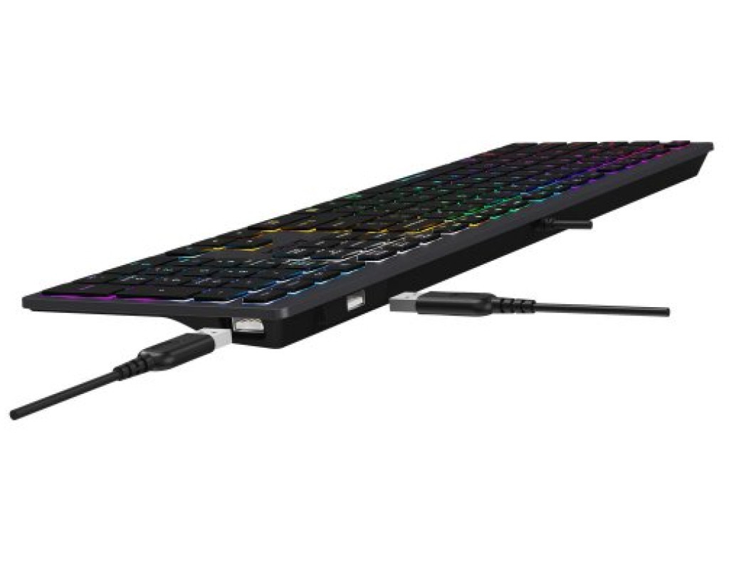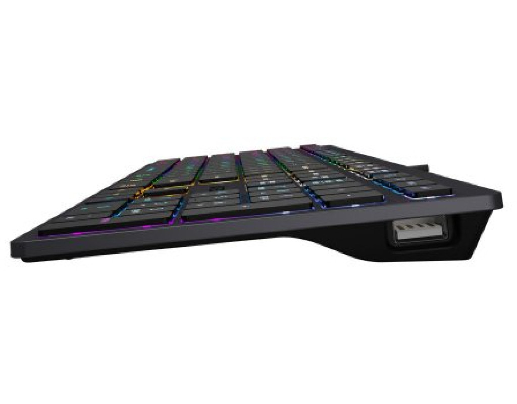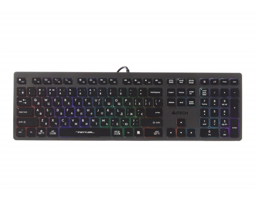 | Клавиатура A4Tech FX60H USB Grey Neon backlit — это изысканный выбор для тех, кто ценит качество и функциональность в сочетании с эстетичным дизайном. Полноразмерная мультимедийная клавиатура создана специально для владельцев персональных компьютеров, которые стремятся получать максимум удовольствия от работы, обучения или игр. Одним из ключевых преимуществ модели является RGB-подсветка, которая делает клавиатуру не только стильным аксессуаром, но и облегчает набор текста в темноте. Выбирайте из множества вариантов освещения, чтобы настроить атмосферу под своё настроение или рабочую среду. Благодаря мембранной конструкции, каждое нажатие клавиши сопровождается бесшумным вводом, что гарантирует комфорт во время длительной работы. Эти клавиши имеют низкопрофильную структуру в "шоколадном" стиле, что дополнительно обеспечивает удобство при быстром наборе текста. Интерфейс USB обеспечивает стабильное проводное подключение, отмечаясь стабильностью и надёжностью. Совместимость с Chrome OS, Android, Mac OS и Windows позволяет без лишних усилий менять операционные системы, приспосабливаясь к различным условиям работы или обучения. Удобство в использовании подкрепляется встроенными противоскользящими резиновыми накладками, которые предотвращают нежелательное движение клавиатуры на столе во время интенсивной работы. Дополнительно эта модель оснащена двумя USB-портами, которые позволяют быстро подключить или зарядить другие USB-устройства, что является огромным преимуществом для занятых пользователей. Мультимедийные клавиши с быстрым доступом к 12 функциям делают взаимодействие с устройством ещё более интуитивным и удобным. Благодаря комбинациям FN+F1-F12 вы легко можете управлять воспроизведением музыки, регулировать громкость или взаимодействовать с приложениями без лишних движений мышью. A4Tech FX60H — это сбалансированное сочетание деталей, делающих её надёжным спутником в повседневных задачах. Откройте для себя новый уровень комфорта с клавиатурой, которая сочетает технологии, стиль и функциональность в каждом своём элементе. |
