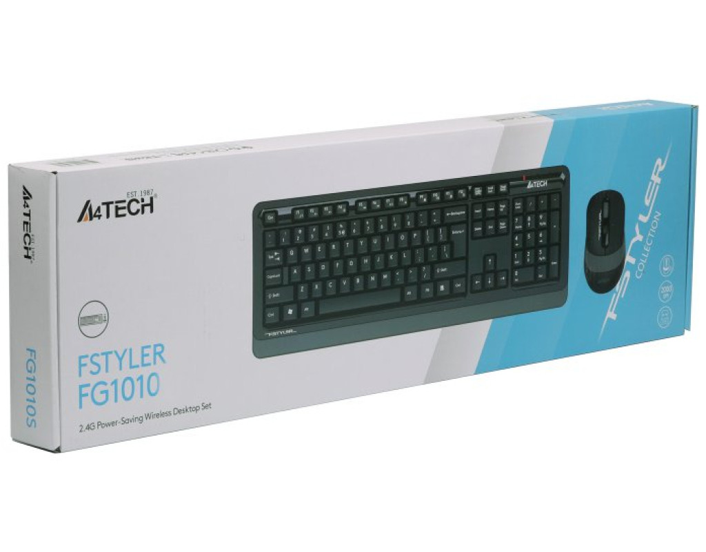 Беспроводной комплект A4TECH FG10 выполнен в стильном дизайне. Продвинутое беспроводное соединение обеспечивает стабильную и надежную связь на расстоянии до 10-15 метров. Маленький нано-приемник соединяет клавиатуру и мышь с помощью только одного usb-порта. Особенности