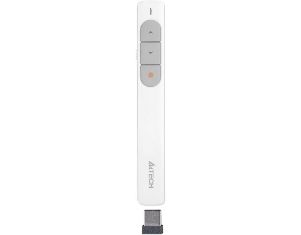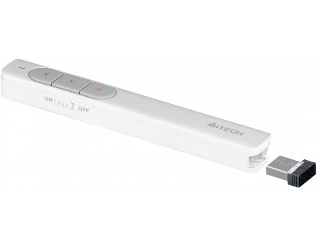 Яркий красный свет хорошо виден на большинстве фоновых изображений. Диапазон беспроводной связи достигает 100 м, что позволяет свободно перемещаться по комнате Автоматическая сортировка каналов 2.4G. Стабильное беспроводное соединение с частотой 2,4 ГГц не допускает задержек и конфликтов Индикатор низкого заряда. Презентер напоминает вам о необходимости замены батареи Силиконовые кнопки легко распознаются на ощупь Удобный беспроводной приемник с поддержкой технологии plug-and-play – просто подключите его к USB-порту и используйте |