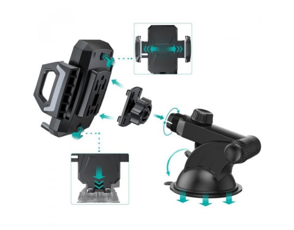 Дополнительные возможности - Вакумный зажим : Надежно фиксирует крепеж на приборной панели, обеспечивая устойчивость даже на неровных дорогах и во время резких маневров.
