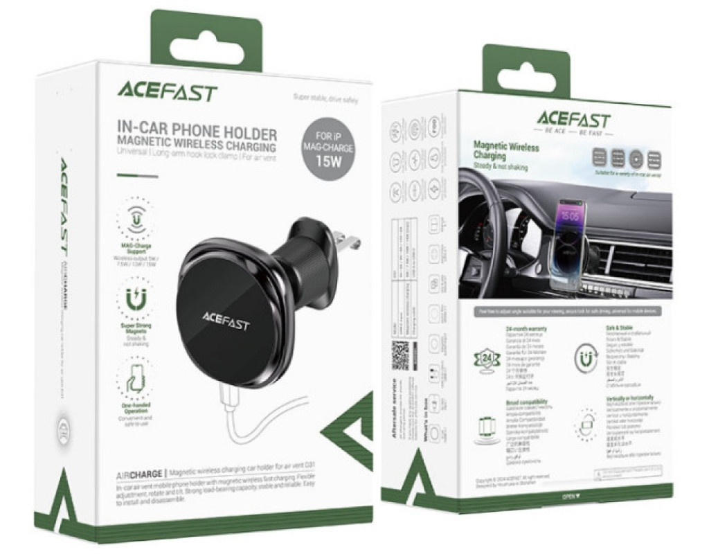 Автомобильное крепление Acefast D31 – это инновационный аксессуар, разработанный для тех, кто ценит комфорт, безопасность и бесперебойную работу своих гаджетов в пути. Благодаря сочетанию магнитного держателя и функции индуктивной зарядки, устройство обеспечивает максимальное удобство во время ежедневных поездок или дальних путешествий. Acefast D31 легко крепится к вентиляционной решетке автомобиля с помощью специального крючка, что гарантирует стабильность даже на неровной дороге. Крепление не мешает осмотру и не влияет на циркуляцию воздуха, оставляя интерьер салона организованным и аккуратным. Мощный круглый магнит надежно фиксирует смартфон в вертикальном или горизонтальном положении, что позволяет безопасно пользоваться навигацией, отвечать на вызовы или слушать музыку. Особым преимуществом является поддержка беспроводной зарядки стандарта QI с мощностью 5 Вт, 7.5 Вт, 10 Вт и 15 Вт. Это позволяет заряжать совместимые смартфоны быстро и без лишних кабелей. Крепление также совместимо с чехлами MAG-Charge, что делает его более универсальным для ежедневного использования. Конструкция держателя подразумевает возможность вращения и регулировки угла наклона одной рукой. Это особенно удобно во время движения – водитель легко может отрегулировать положение смартфона, не отвлекаясь от дороги. Acefast D31 – сочетание современного дизайна, высокой функциональности и интеллектуальных технологий для уверенного и комфортного вождения. |