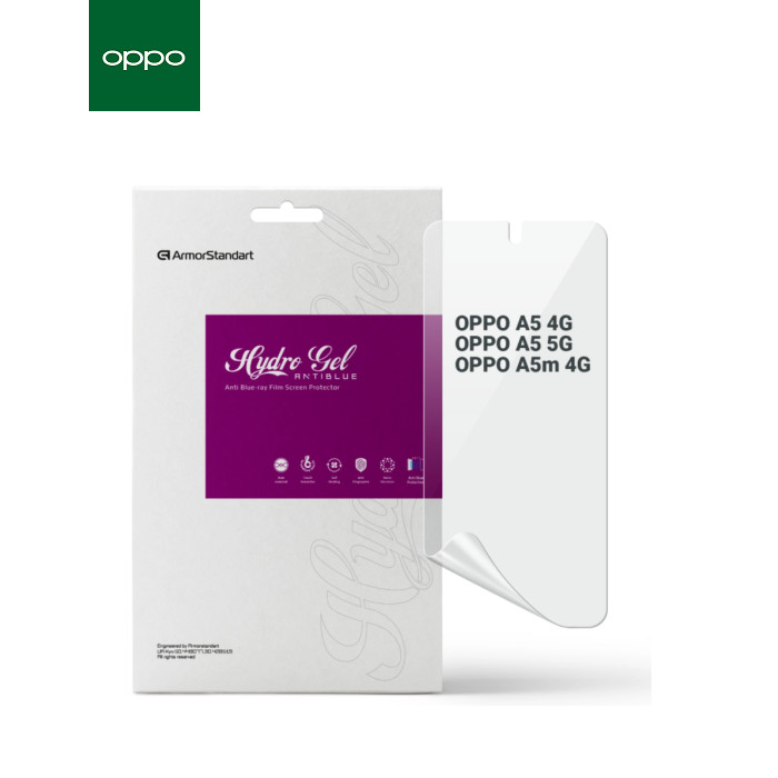 Назначение - для телефона, Вид покрытия - глянцевое, гидрогелевая, Совместимость с моделями - OPPO A5, OPPO A5m, Подходит для телефонов с диагональю - 6.67", Особенности - Anti-Blue Light, Количество в упаковке - 1 шт