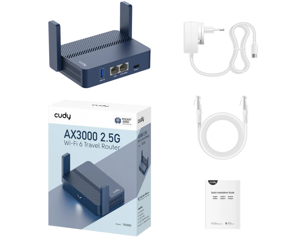 | Маршрутизатор Cudy TR3000, AX3000 2.5G Wi-Fi 6 Router w USB, 2×1000Mbps RJ45, USB Type-C power in. |