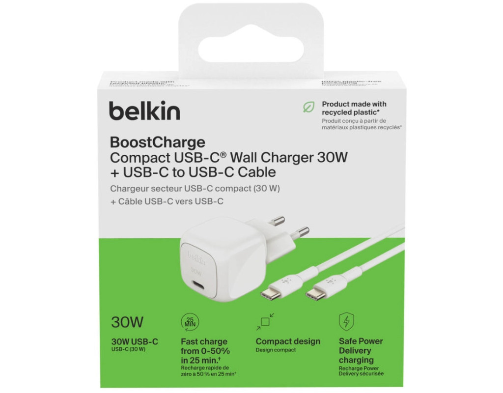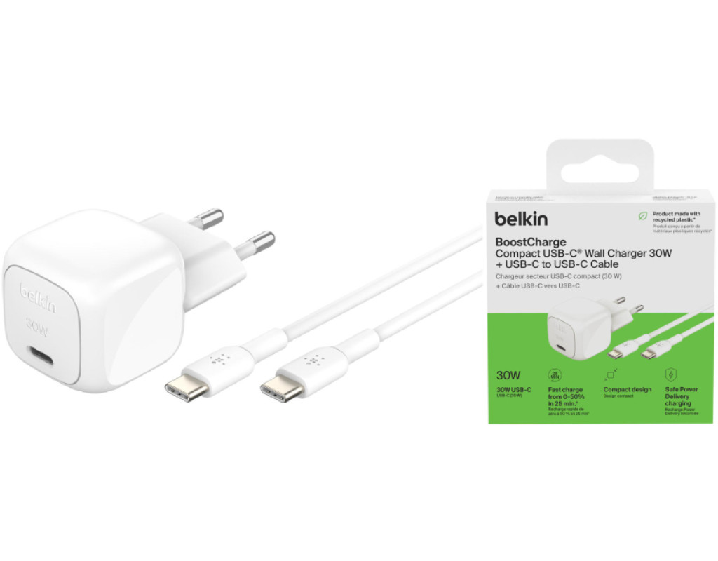 | Зарядное устройство Belkin USB-C PD30W PPS + кабель USB-C to USB-C 1.0m PVC в белом цвете (WCA008KQ1MWH-B6) — это сочетание высокого качества и инновационных технологий для надежной и быстрой зарядки ваших устройств. Этот адаптер, работающий от сети, создан для максимально эффективной зарядки смартфонов, планшетов, экшн-камер, TWS наушников и смарт-часов, удовлетворит самых требовательных пользователей. Одним из уникальных преимуществ этого зарядного устройства является поддержка быстрой зарядки с помощью технологии USB-C Power Delivery. Вы сможете зарядить iPhone 16 от 0 до 50% всего за 24 минуты или Samsung 25 за 26 минут. Это настоящее спасение в насыщенном ритме жизни, когда каждая минута на счету. Встроенный чипсет USB-C PD 3.1 обеспечивает безопасную зарядку, уменьшая тепловыделение и повышая эффективность. Благодаря мощности до 30 Вт и максимальному выходному току 5 А, это устройство гарантирует быструю и безопасную передачу электроэнергии для всех ваших современных гаджетов. Компактный дизайн зарядного устройства делает его идеальным спутником для дома, офиса и путешествий. С легко складывающимися вилками он без проблем поместится в ваш багаж или карман, предотвращая повреждения. Качественный кабель USB-C to USB-C длиной 1 м обеспечивает удобство и надежность соединения, выполнен из прочного PVC, выдержит многочисленные подключения и отключения. Выбирайте Belkin для безупречного качества и высокой производительности ваших устройств. |