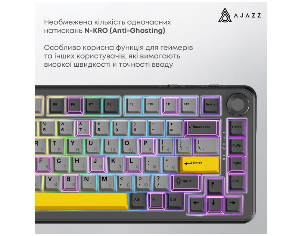| Клавиатура Ajazz AK820 MAX PLUS Daydream Switch RGB Wireless/Bluetooth/USB Black (AK820MAX-DD-BGY) - это изысканная механическая клавиатура, созданная для геймеров и программистов, которые ценят производительность и стиль. Она сочетает элегантный дизайн с высокотехнологичными характеристиками, которые делают её незаменимой частью вашего технического арсенала. Конструкция Ajazz AK820 MAX выполнена в компактном формате 75%, что оптимизирует расположение клавиш, сохраняя при этом их функциональность. Благодаря линейным переключателям Flying Fish, каждое нажатие отмечается быстрой реакцией и плавным ходом, обеспечивая точность и комфорт даже в самых напряжённых игровых моментах или во время программирования. Несколько режимов подключения - это одно из главных преимуществ этой клавиатуры. Вы можете выбрать проводное соединение через USB-C для стабильного подключения, или воспользоваться беспроводными возможностями Bluetooth 5.0 или 2.4 ГГц для большей свободы движений. Это создаёт максимальную гибкость, позволяя использовать клавиатуру с различными устройствами, включая телевизоры и компьютеры на базе Linux, Mac OS или Windows. Регулируемая RGB подсветка улучшает визуальный эффект вашей рабочей станции или игрового пространства. Вы можете настроить её в соответствии с вашим настроением или выбранной игрой, что добавляет индивидуальности. Встроенный аккумулятор обеспечивает длительную автономную работу, позволяя вам сосредотачиваться на важных задачах без отвлечений на частые подзарядки. Клавиатура идеально подходит для использования с телевизорами благодаря своему беспроводному функционалу, а также обладает интегрированными настройками громкости, что делает её практичной для просмотра мультимедиа. Благодаря гаскетной структуре, Ajazz AK820 MAX минимизирует шум клавиш, что повышает комфорт во время длительных сеансов печати. Её стильный чёрный корпус безукоризненно сочетается с любым интерьером, подчёркивая вашу утончённость и вкус. Ajazz AK820 MAX PLUS - это идеальный выбор для требовательных пользователей, которые ценят качество, надёжность и уникальные функции, объединённые в одном устройстве. |