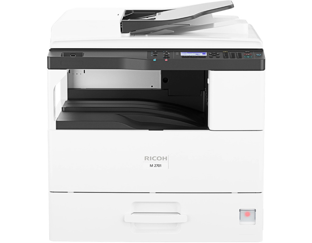 Чорно-білий БФП "3-в-1" формату А3, надійне універсальне рішення для обробки документів. Цей багатофункціональний пристрій друкує і копіює в чорно-білому режимі з швидкістю 27 сторінок за хвилину, а також сканує у кольорі. M 2701 відрізняється від свого "брата" М 2700 наявністю реверсивного автоподавача оригіналів. Для полегшення роботи панель управління включає клавіші таких розширених функцій, як копіювання посвідчень (ID card copy) і сканування на електронну пошту. Для збільшення можливостей друкування мобільні технології AirPrint і Mopria підтримуються в стандартній конфігурації, а конфіденційні документи можуть бути захищені паролем і заблоковані до виходу. В базі - реверсивний автоподавач оригіналів, касета на 500 аркушів, бічний лоток на 100 аркушів, дуплекс, GDI контролер, мережевий гігабітний інтерфейс, пам'ять 512 Мб і стартовий тонер на 4,000 відбитків (@6%).