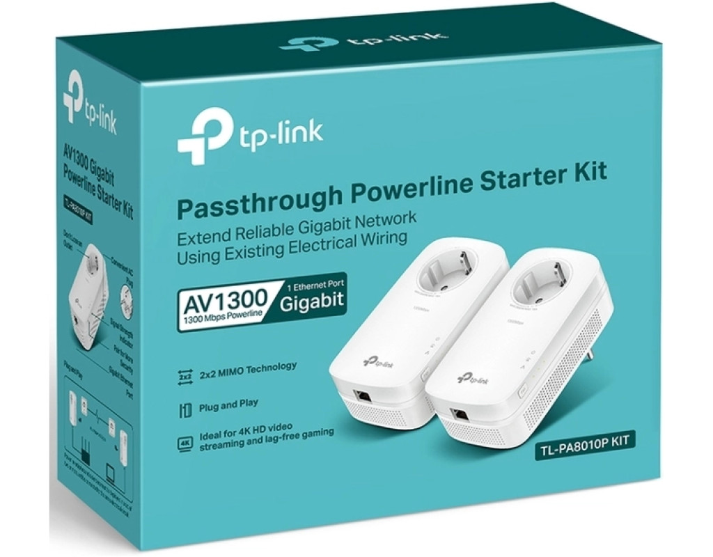 1200 Мбит/с!* Производительное решение Благодаря гигабитному порту Ethernet* комплект адаптеров TL-PA8010P KIT позволит подключать к высокоскоростному интернету ресурсоемкие устройства, обеспечивая плавную передачу потокового Ultra HD-видео. TL-PA8010P KIT — это эффективное решение для создания домашней развлекательной сети. * Поддержка MIMO повышает скорость передачи данных.