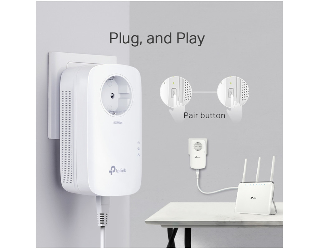 Подключил и забыл. Настройка не требуется Подключите один адаптер Powerline к маршрутизатору, а другой адаптер к розетке в другой комнате, соединив его с вашим сетевым устройством по кабелю Ethernet — и все готово!