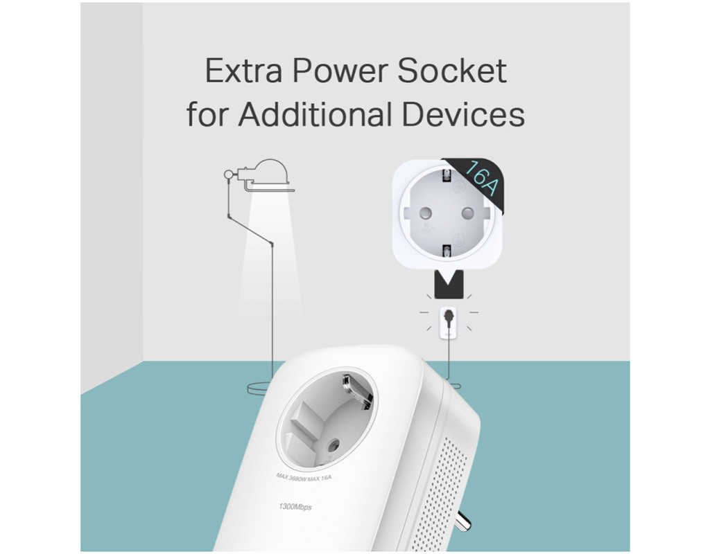 Розетки для подключения дополнительных устройств Встроенная розетка с выходной мощностью до 16 А позволит использовать адаптер Powerline для подключения дополнительных устройств или удлинителей, как если бы это была нормальная розетка. |