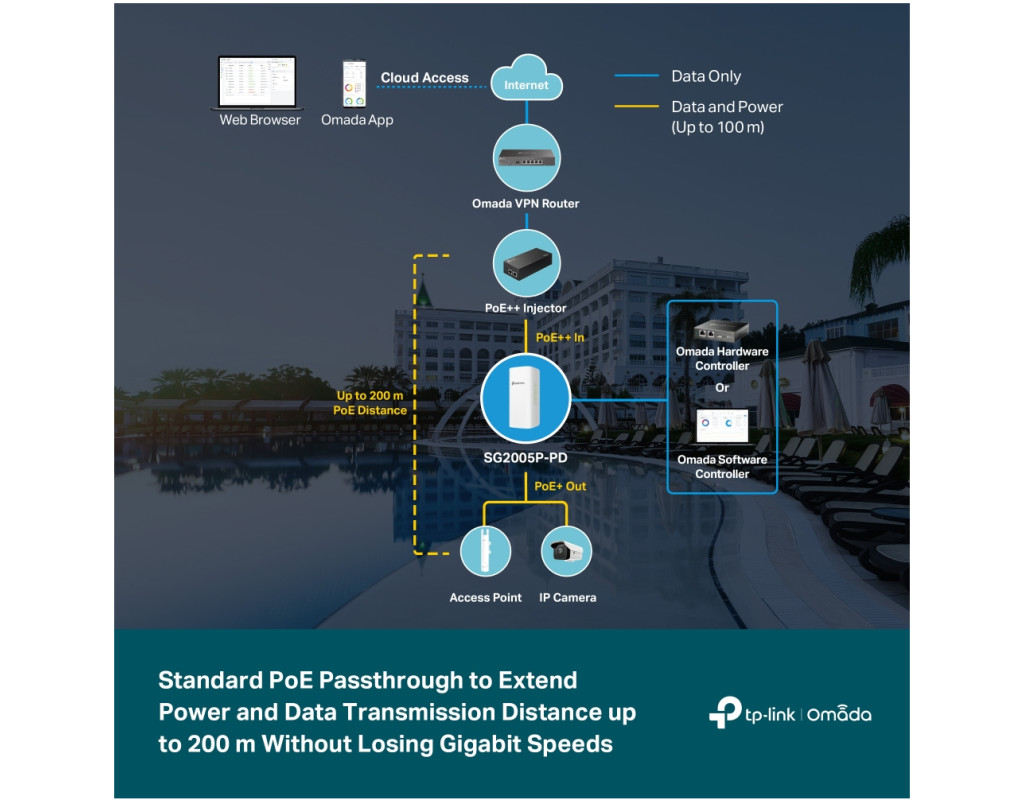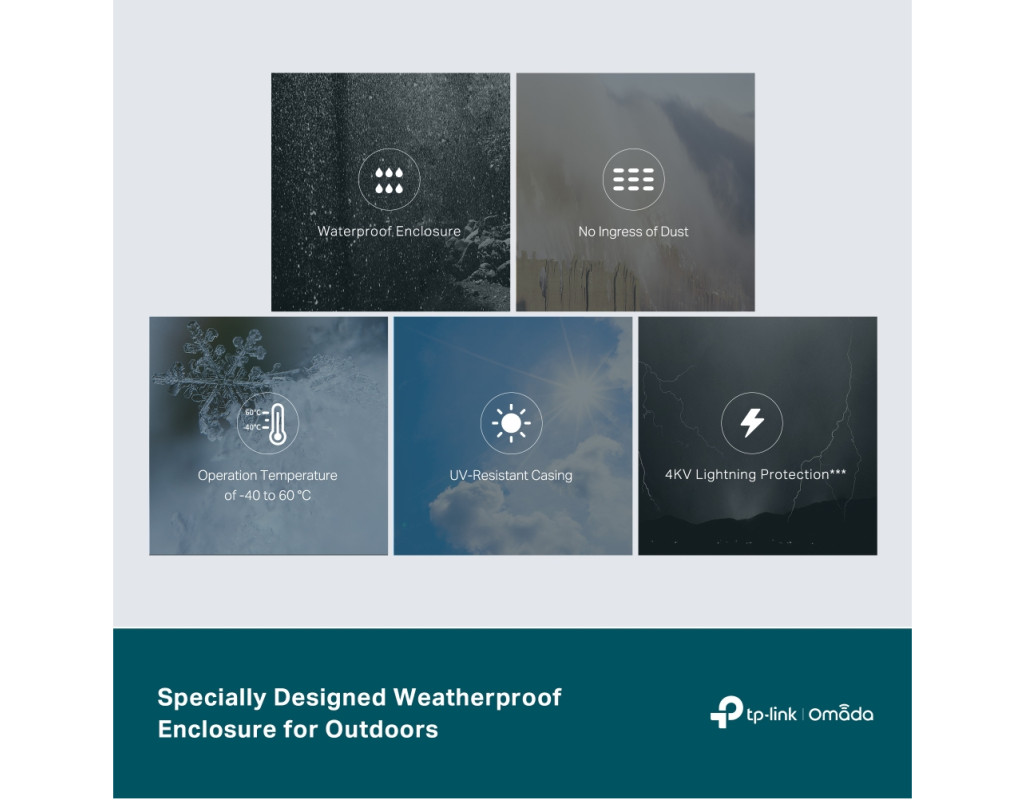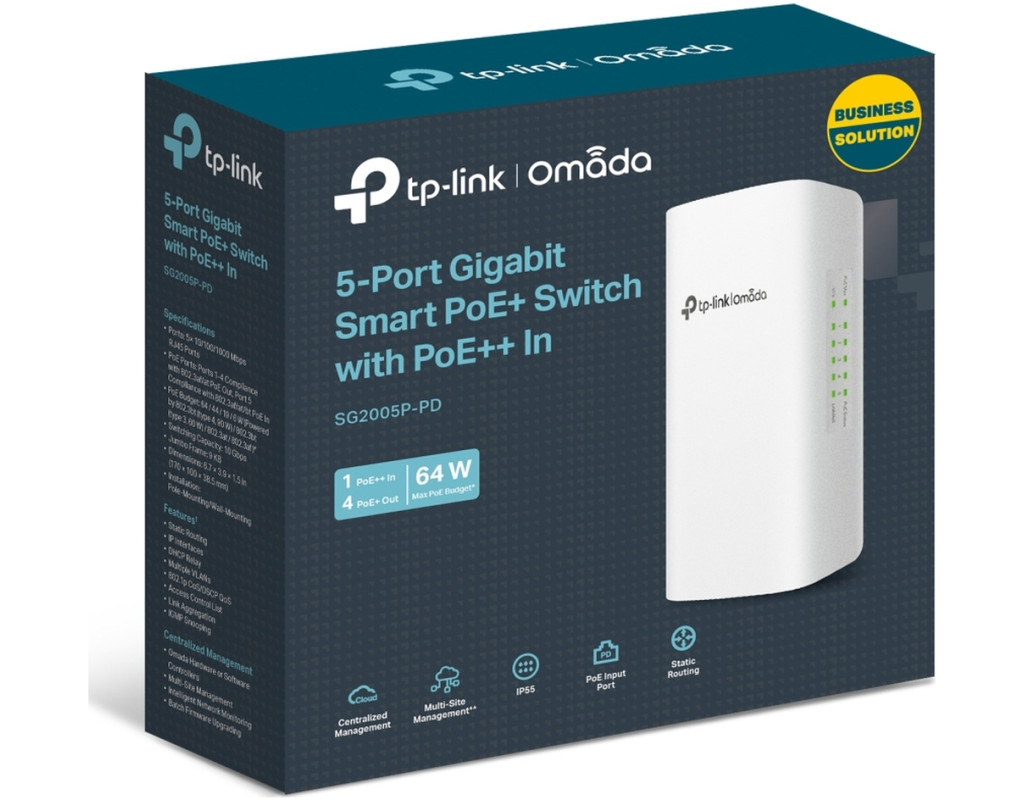 | Стандартная передача PoE для увеличения расстояния передачи мощности и данных до 200 м без потери гигабитной скорости Устраните ограничение доступа к сети и передавайте данные и питание с помощью одного кабеля, упрощающего установку и сокращающего расходы на развертывание. Двойное расстояние соединения PoE между устройством от 100 м до 200 м, идеально подходящее для камер наблюдения и точек доступа на большом расстоянии. Один порт Gigabit PoE++ In и четыре гигабитных порта PoE+ Out Поддерживает PoE до 64 Вт/44 Вт/19 Вт/6 Вт при питании от 802.3bt Type 4 (90 Вт), 802.3bt Type 3 (60 Вт), 802. Коммутатор PoE-PD автоматически определяет необходимую мощность PoE для ваших устройств и защищает ваше оборудование, не поддерживающее PoE, от повреждения. Специально разработанный атмосферостойкий корпус для улицы Прочный корпус, получивший степень защиты IP55 при тестировании Ingress Protection, защищает коммутатор от строгих внешних условий. Легкая установка для гибкого приспособления к вашим потребностям Легко крепится к стене или столбу с помощью входящих в комплект монтажных комплектов. Его компактная конструкция позволяет гибко размещать коммутатор, например во внешней распределительной коробке. Программно-конфигурированная сеть (SDN) с облачным доступом Платформа программно-определенных сетей Omada (SDN) объединяет сетевые устройства, включая точки доступа, коммутаторы и шлюзы, обеспечивая 100% централизованное облачное управление. Omada создает высокомасштабируемую сеть, управляемую с одного интерфейса. |