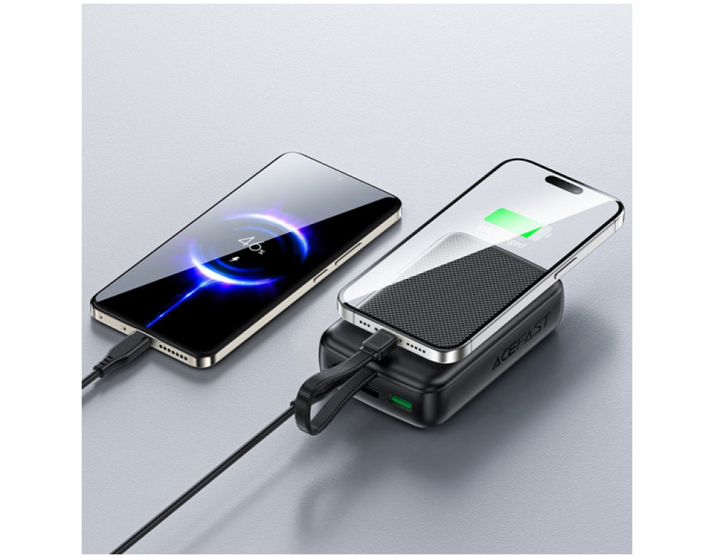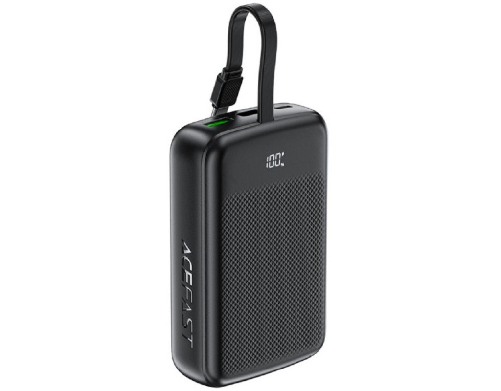 Універсальна мобільна батарея Acefast M14 ємністю 20000 мАг допоможе швидко та безпечно поповнити заряд USB пристроїв з потужністю до 22,5 Вт. Вона підтримує більшість протоколів швидкого заряджання, у тому числі – UFCS, PPS, PD2.0/PD3.0, QC4+/QC3.0/QC2.0, AFC, FCP, SCP. УМБ оснащена вбудованим USB Type-C кабелем та двома USB портами - USB Type-A з та USB Type-С. Усі вихідні роз’єми підтримують зарядну потужність до 22,5 Вт. Заряд самої УМБ Acefast M12 швидко поповнюється за допомогою кабелю або порта USB Type-С з потужністю до 18 Вт. Високоякісні літієво-полімерні акумулятори розраховані на довготривале використання, вони зберігають свою ємність навіть після багаторазового перезаряджання. Цифровий світлодіодний дисплей на передній панелі корпусу надаватиме інформацію про рівень заряду УМБ Acefast M14. |
