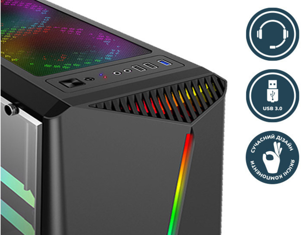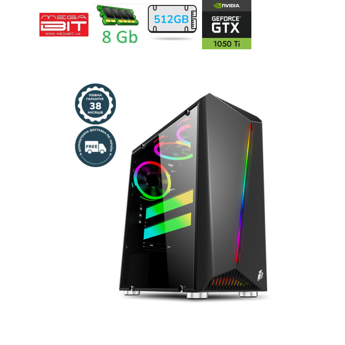 | Комп'ютер MegaBiT Home I101R16S512_v2 (Intel Core i3-10100F (3.6 - 4.3 ГГц) / RAM 16 ГБ / SSD 512 ГБ / nVidia GeForce GT 1050 Ti, 4 ГБ DDR5 / без ОД / LAN /Wi-Fi / без ОС) |