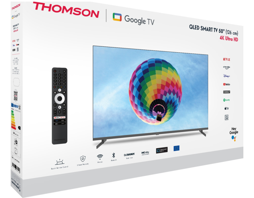 Наслаждайтесь яркими цветами, четкими деталями и увлекательным звуком с 50-дюймовым QLED-телевизором Thomson Google TV, работающим на основе технологий Quantum Dot и Dolby. Дисплей QLED на основе нанокристаллов Quantum Dot обеспечивает сбалансированную яркость, поразительную контрастность и расширенный цветовой диапазон. В сочетании с разрешением 4K Ultra HD вы сможете рассмотреть каждую деталь и погрузиться в кристально чистое изображение. Технология Dolby Vision повышает яркость каждой сцены, обеспечивая точную цветопередачу для реалистичных изображений. Наслаждайтесь динамическим звуком из Dolby Atmos для полного погружения в телевизионное пространство. Google TV упрощает просмотр развлечений, упорядочивая содержимое ваших приложений и подписок. Создайте несколько профилей пользователей и пользуйтесь рекомендациями кураторов. Наслаждайтесь широким спектром интеллектуальных функций, таких как доступ к 400 000+ фильмов и телешоу, интеллектуальное голосовое управление с помощью Google Assistant и Google Cast для потоковой передачи контента с совместимых интеллектуальных устройств на телевизор. Эргономичный пульт дистанционного управления с плавной подсветкой позволит вам держать все под контролем даже при тусклом освещении. Встроенный Google Assistant позволяет интуитивно управлять телевизором с помощью голосовых команд. Ищите любимые фильмы, спрашивайте рекомендации в соответствии с вашим настроением или управляйте совместимыми смартустройствами – и все это с помощью голоса. Встроенный тройной тюнер позволяет принимать сигнал через спутниковую, эфирную или кабельную антенну. Таким образом вы можете принимать все доступные каналы без дополнительного оборудования. |