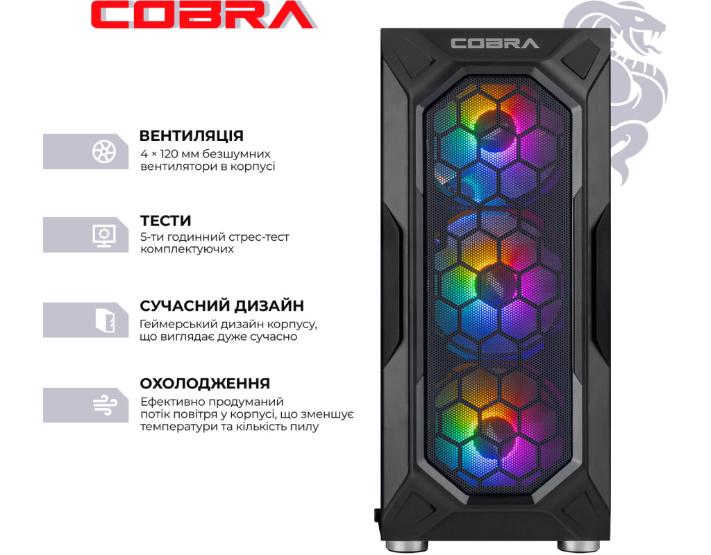 | COBRA сочетает в себе высокую производительность, мощность и современные технологии. Ультра графика Топовые видеокарты обеспечат максимальную, и бескомпромиссную производительность в самых требовательных играх и приложениях. Игры в ультра настройках графики - теперь ты сможешь увидеть мир современных игр глазами разработчиков, оценить их так, как они были задуманы, а не мириться и подстраиваться. Топовые процессоры Старшая линейка процессоров – верх производительности и приятный запас для комфортной работы с большими массивами данных, сложными играми, обработкой больших объемов мульти-медиа контента. Беспрецедентная мощность, и малое время отклика вместе с встроенными средствами безопасности позволяют работать, играть и создавать контент так быстро и так эффективно, как вы захотите. Абсолютная мощь твоего ПК от COBRA Игровые компьютеры COBRA с максимальной конфигурацией собраны специально для самых продвинутых пользователей и требовательных к качеству графики геймеров. Данная линейка позволит насладиться ультра настройками графики и максимальным разрешением во всех современных играх, сохраняя максимально доступные показатели FPS. Лучшего просто не существует! ПК COBRA собираются на базе комплектующих признанных мировых лидеров, таких как Intel, AMD, ASUS, MSI, Gigabyte, і ін. Профессиональная сборка компьютера COBRA обеспечит оптимальный воздушный поток внутри корпуса, а значит и отличное охлаждение всех компонентов ПК. |
