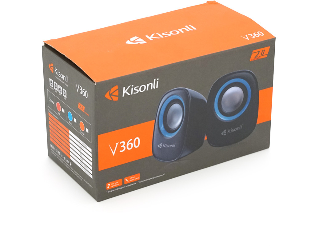 Колонки 2.0 Kisonli V360 для ПК і ноутбука, USB + 3.5mm, 2x1.5W, 20Hz- 20KHz, Black, BOX, Q50