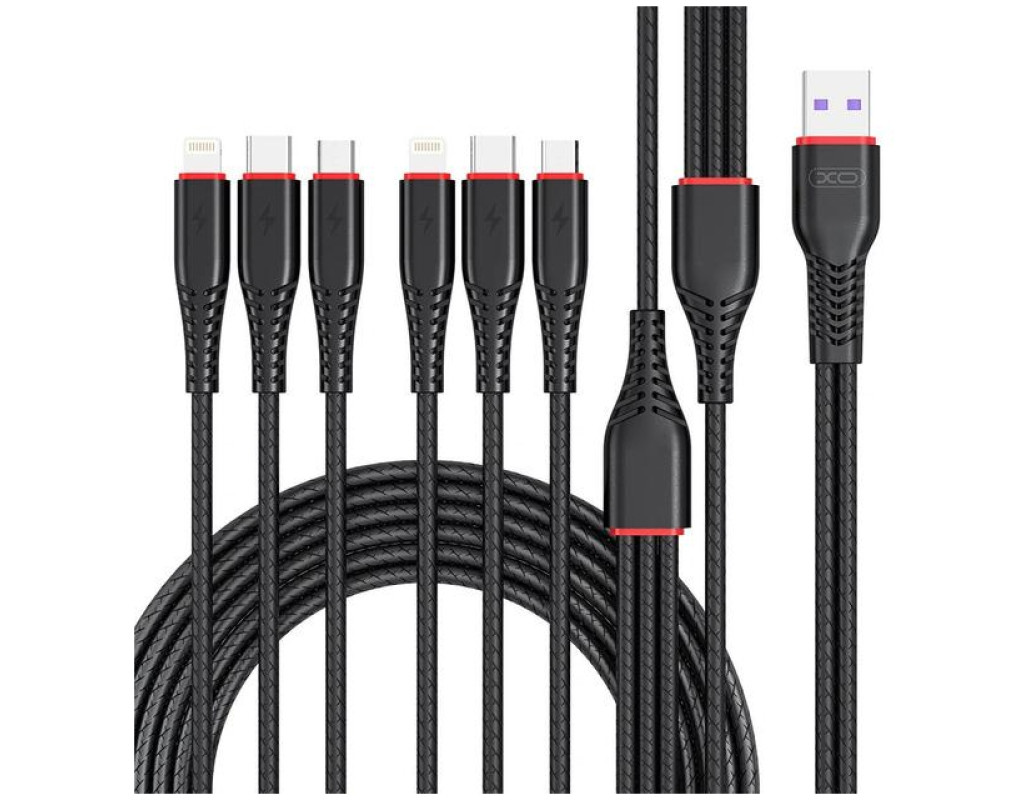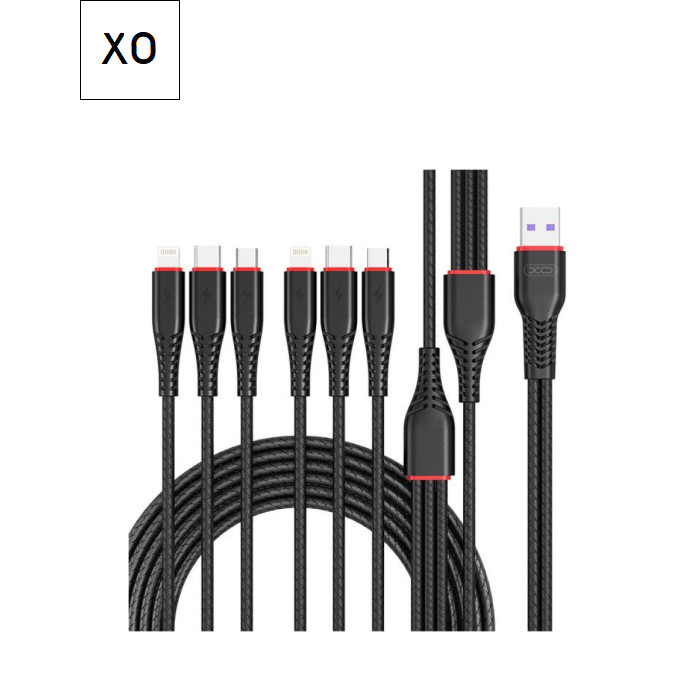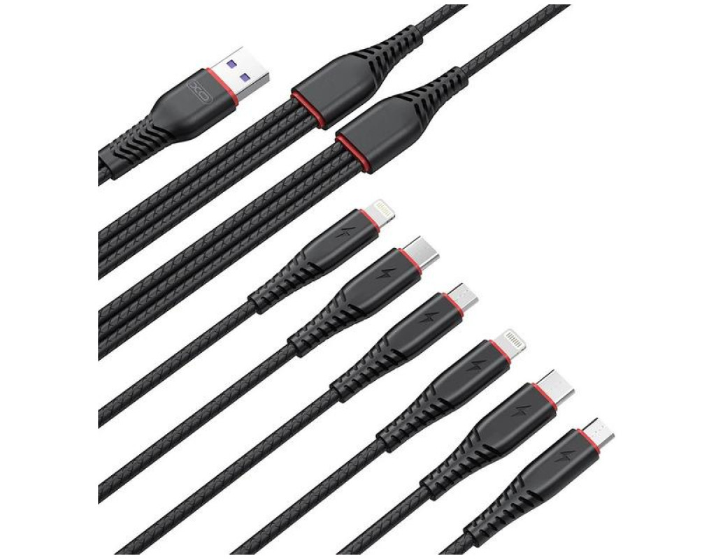 Кабель XO NB196 – это универсальный кабель, благодаря которому вы сможете одновременно заряжать до 6 гаджетов, при этом используя только один USB слот, это достаточно комфортно, ведь не нужно носить много кабелей, а будет достаточно всего одного XO NB196. Кабель включает в себя по 2 выхода Type-C, Lightning и Micro-USB. Особенностью XO NB196 является совместимость с абсолютным большинством моделей телефонов и планшетов. XO NB196 быстро и безопасно зарядит ваши устройства, его максимальная сила тока 3,5А при 5V. Длина кабеля составляет 1,2 м, что позволяет удобно разместить гаджет рядом с вами. Если вы устали от постоянных поисков кабелей для разных девайсов, поломанных кабелей и ищете удобный в использовании качественный кабель для зарядки до 6 гаджетов одновременно, тогда XO NB196 – лучший вариант для вас. Характеристики: