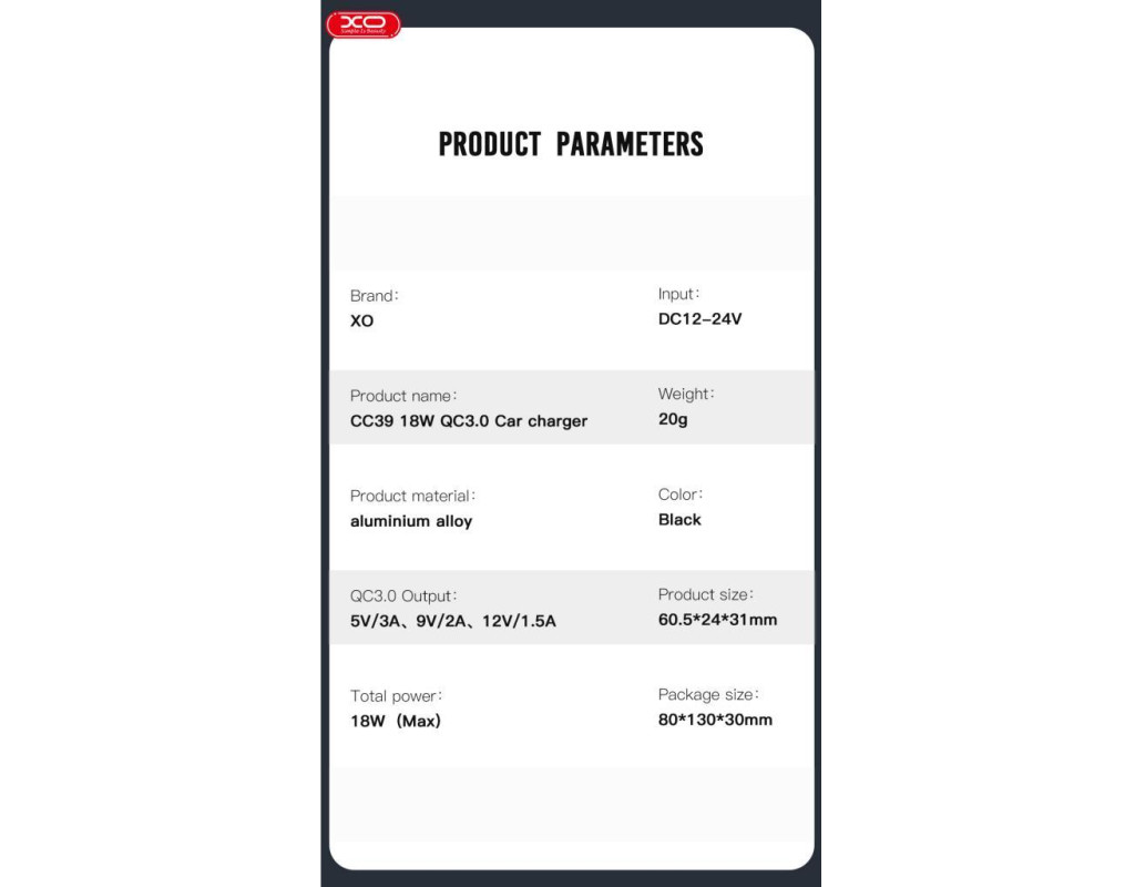 | Зарядное устройство XO USB QC3.0 black (CC39-BK) — это высококачественный автомобильный адаптер, который обеспечивает быструю и надежную зарядку для ваших мобильных устройств даже в дороге. Благодаря своему компактному дизайну, он идеально вписывается в прикуриватель автомобиля, не занимая лишнего места в вашем авто. Одним из ключевых преимуществ является поддержка Quick Charge 3.0, что обеспечивает быструю зарядку для ваших смартфонов, планшетов и фитнес-браслетов. Устройство имеет один выходной порт USB с максимальной выходной мощностью 18 Вт, что позволяет заряжать ваши гаджеты на полной скорости и без задержек. Зарядное устройство выполнено из прочных, огнестойких материалов, что не только обеспечивает долговечность, но и способствует безопасности использования. Оно включает встроенную многоуровневую защиту от перегрева, перегрузки, перезарядки, короткого замыкания и перенапряжения, что гарантирует безопасность как для вашего автомобиля, так и для ваших устройств. Работая с напряжением на входе 12-24 V, зарядное устройство поддерживает разнообразные варианты выхода: 5V/3A, 9V/2A, 12V/1.5A, что делает его универсальным для большинства современных гаджетов. Доступный в стильном черном цвете, он не только выполняет свою функцию, но и добавляет элегантности в интерьер вашего авто. Выбирая зарядное устройство XO USB QC3.0, вы инвестируете в качество и надежность, гарантируя быстрое и безопасное восстановление энергии вашим любимым устройствам даже во время путешествий. |