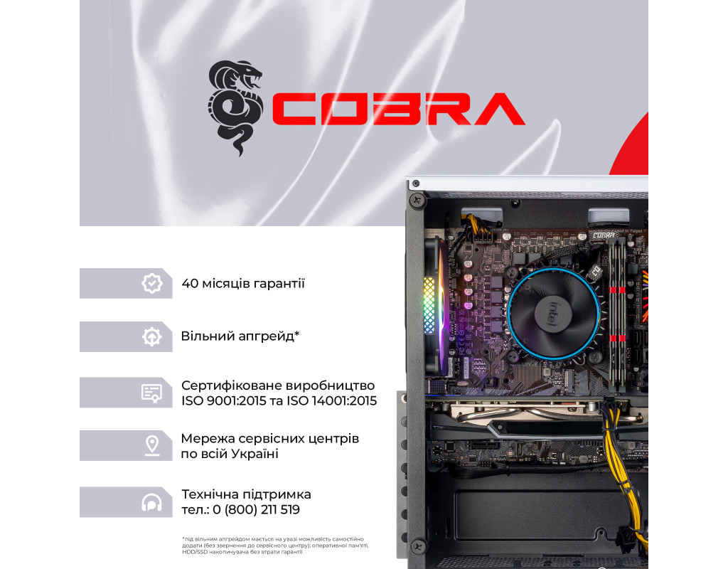 | COBRA сочетает в себе высокую производительность, мощность и современные технологии. Ультра графика Топовые видеокарты обеспечат максимальную, и бескомпромиссную производительность в самых требовательных играх и приложениях. Игры в ультра настройках графики - теперь ты сможешь увидеть мир современных игр глазами разработчиков, оценить их так, как они были задуманы, а не мириться и подстраиваться. Топовые процессоры Старшая линейка процессоров – верх производительности и приятный запас для комфортной работы с большими массивами данных, сложными играми, обработкой больших объемов мульти-медиа контента. Беспрецедентная мощность, и малое время отклика вместе с встроенными средствами безопасности позволяют работать, играть и создавать контент так быстро и так эффективно, как вы захотите. Абсолютная мощь твоего ПК от COBRA Игровые компьютеры COBRA с максимальной конфигурацией собраны специально для самых продвинутых пользователей и требовательных к качеству графики геймеров. Данная линейка позволит насладиться ультра настройками графики и максимальным разрешением во всех современных играх, сохраняя максимально доступные показатели FPS. Лучшего просто не существует! ПК COBRA собираются на базе комплектующих признанных мировых лидеров, таких как Intel, AMD, ASUS, MSI, Gigabyte, і ін. Профессиональная сборка компьютера COBRA обеспечит оптимальный воздушный поток внутри корпуса, а значит и отличное охлаждение всех компонентов ПК. |