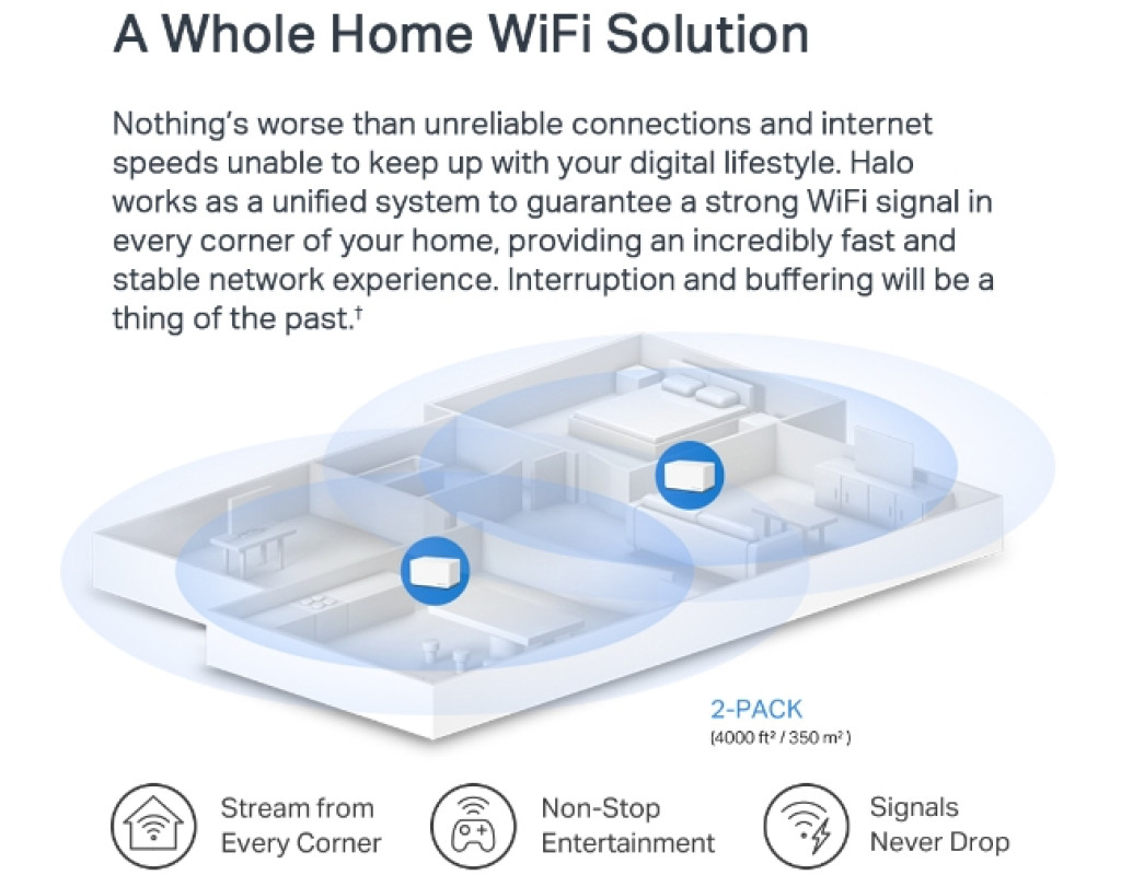 | Поддержка Wi-Fi 6, Halo H70X улучшает практически все аспекты вашей сети: быстроту, эффективность и пропускную способность.