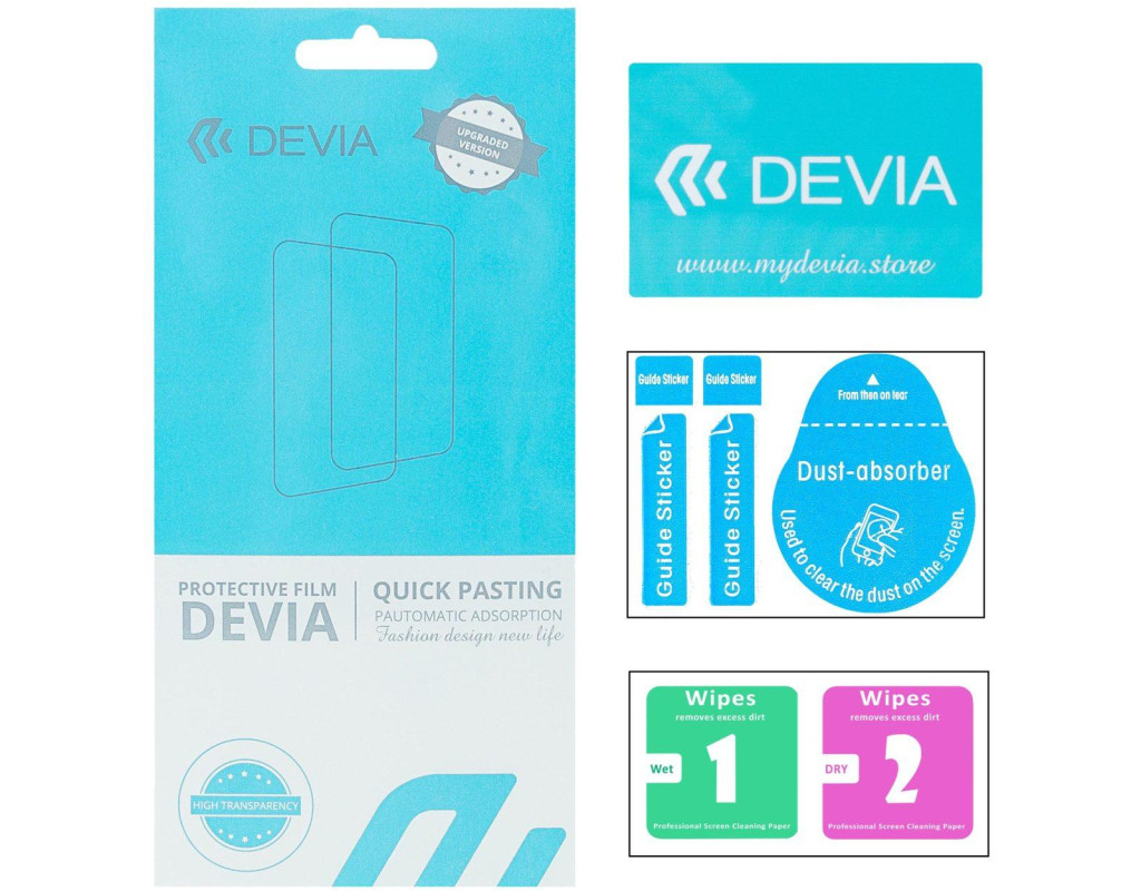 | Гидрогелевая пленка Devia, стикер для очистки, влажная и мокрая салфетка, карточка. Пленка защитит Ваш смартфон от повреждений. Не трескается при падении и не скалывается по краям. Следуйте инструкции по поклейке. |