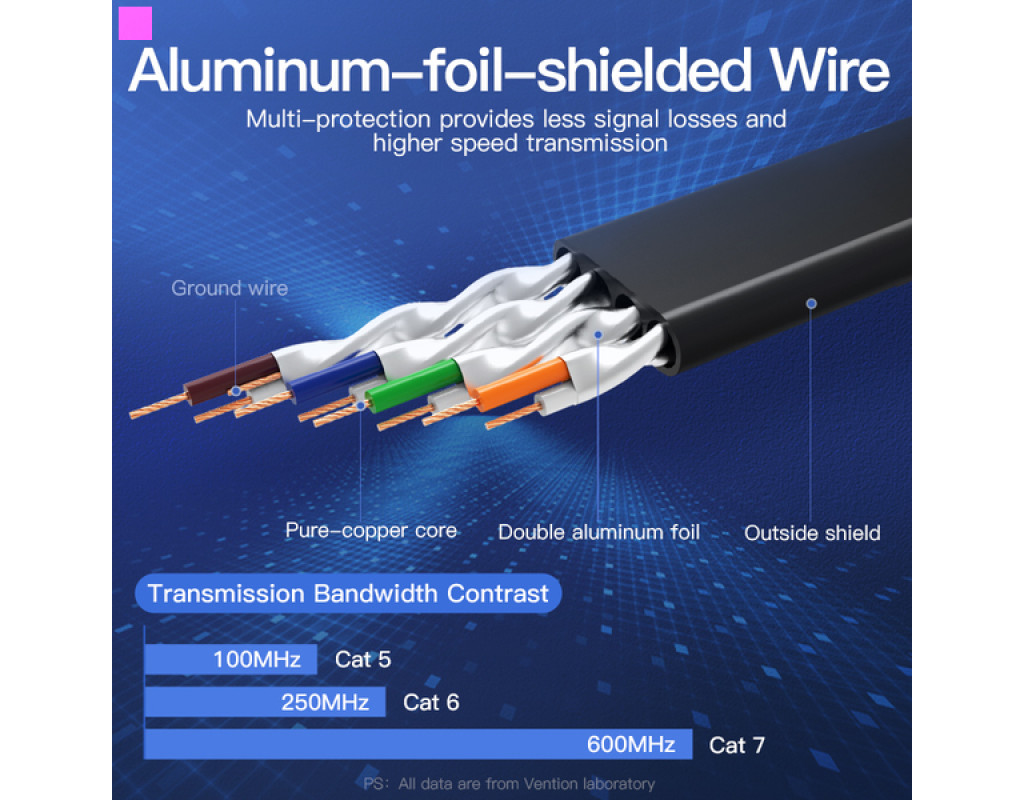 | Сетевой кабель Vention Ethernet Flat Cable RJ45 CAT7 предназначен для коммутации компьютерных Ethernet-сетей со стандартами 10BASE-T (10 Мбит/сек), 100BASE-T(x) (100 Мбит/сек), 1000BASE-T(x) (1 Гбит/сек), 10GBASE-T (10 Гбит/сек). Для предотвращения электромагнитных помех и шумов, каждая жила защищена дополнительной изоляцией из сверхвысокомолекулярного полиэтилена высокой прочности (HDPE). |