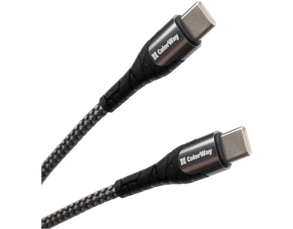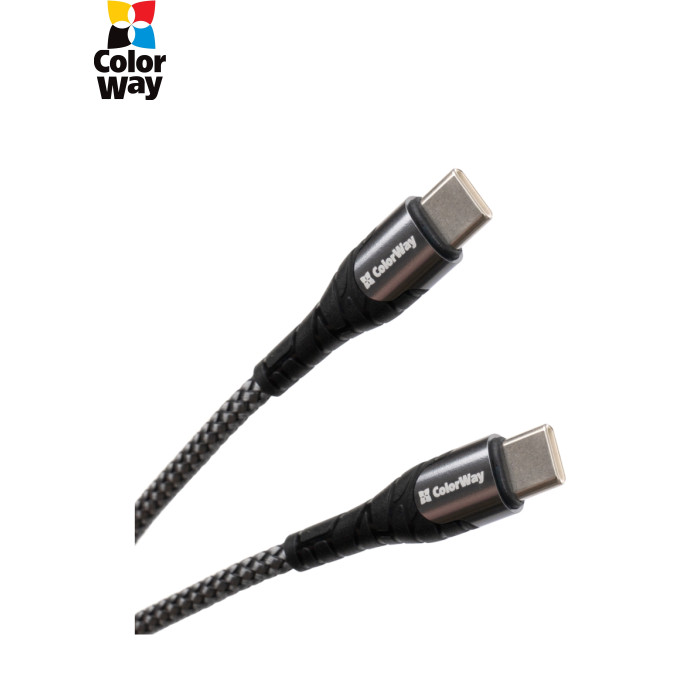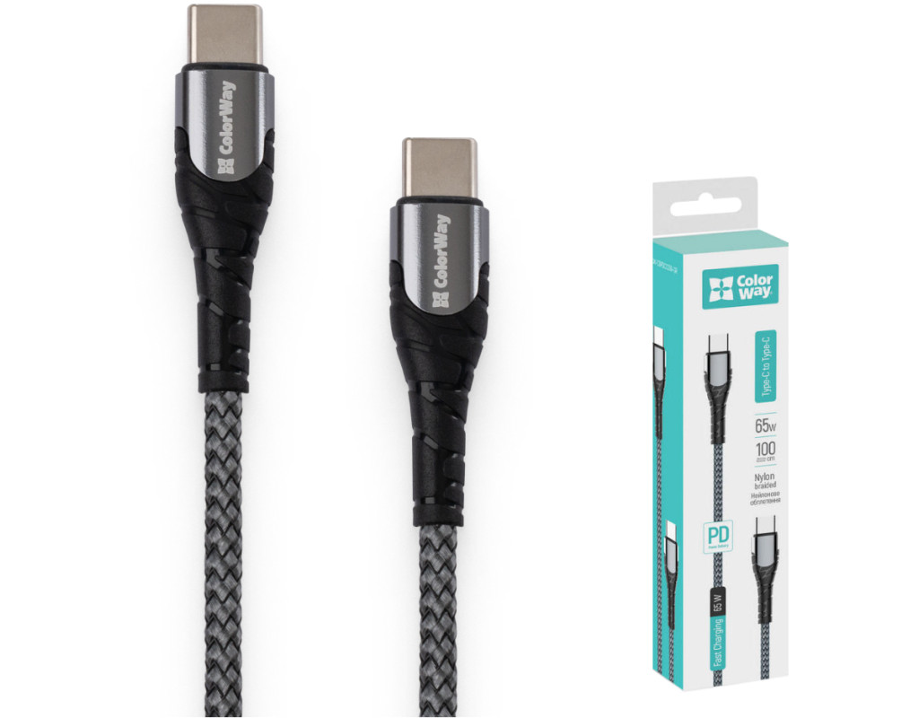Дата кабель USB-C to USB-C 1.0m PD Fast Charging 65W 3А grey ColorWay (CW-CBPDCC040-GR)