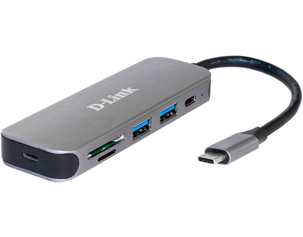 | Концентратор с 2 портами USB 3.0, 1 портом USB Type-C, слотами для карт SD и microSD и разъемом USB Type-C. |