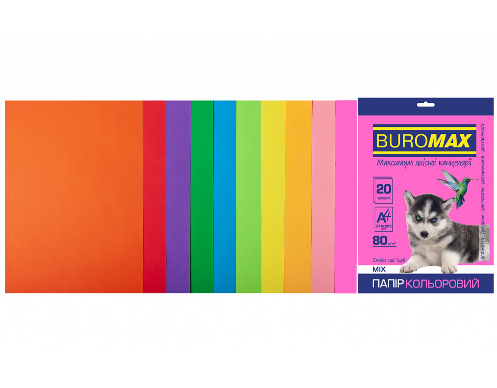 Бумага Buromax А4, 80g, NEON+INTENSIVE, 10colors, 20sh (BM.2721820-99)