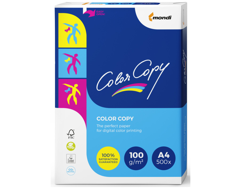 | Color Copy - папір для повнокольорового цифрового лазерного друку: 1. Найкраща якість- Висока білизна- Широкий колірний обхват- Рівномірна запечатка плашок- Рекомендована виробниками цифрового обладнання- Щільність 100 gsm 2. Найвищий рівень ефективності- Ідеальна прохідність паперу- Зниження зносу обладнання- Відмінні характеристики для післядрукарської обробки 3. Захист навколишнього середовища- Сертифікат FSC- EU Flower - CO2 нейтральна |