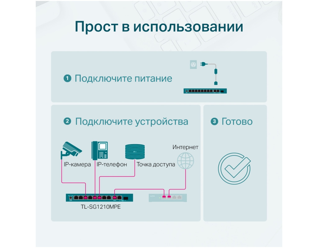 | Коммутатор сетевой TP-Link TL-SG1210MPE — это smart устройство, которое идеально подходит для тех, кто ценит качество и эффективность в своей сетевой инфраструктуре. С форм-фактором настольного варианта, этот коммутатор легко впишется в ваш офисный пространство, не занимая лишнего места. Наличие 10 портов обеспечивает дополнительные возможности для расширения, из которых 8 портов поддерживают PoE+, предоставляя до 30 Вт мощности на каждый порт, что позволяет подключать устройства с высоким потреблением энергии, такие как IP-телефоны или точки доступа. Его возможность удаленного управления позволяет удобно контролировать и настраивать параметры сети даже на расстоянии. Благодаря этому вы всегда будете держать ваш бизнес под контролем. Значительные преимущества также добавляет размер таблицы MAC-адресов, которая вмещает до 4000 адресов, оптимизируя обработку данных и минимизируя задержки связи. Этот коммутатор, который соответствует требованиям PoE 802.3at (PSE), обеспечивает стабильную работу и защищенность ваших сетевых устройств. В целом, TP-Link TL-SG1210MPE — это отличный выбор для любого современного офиса или бизнеса, который стремится повысить эффективность и надежность своей сети без значительных дополнительных затрат. |