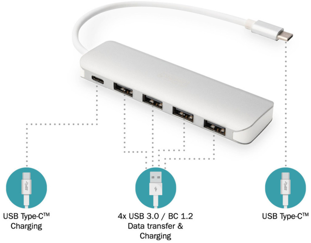 Концентратор Digitus USB Type-C, 4xUSB 3.0 (DA-70242-1)