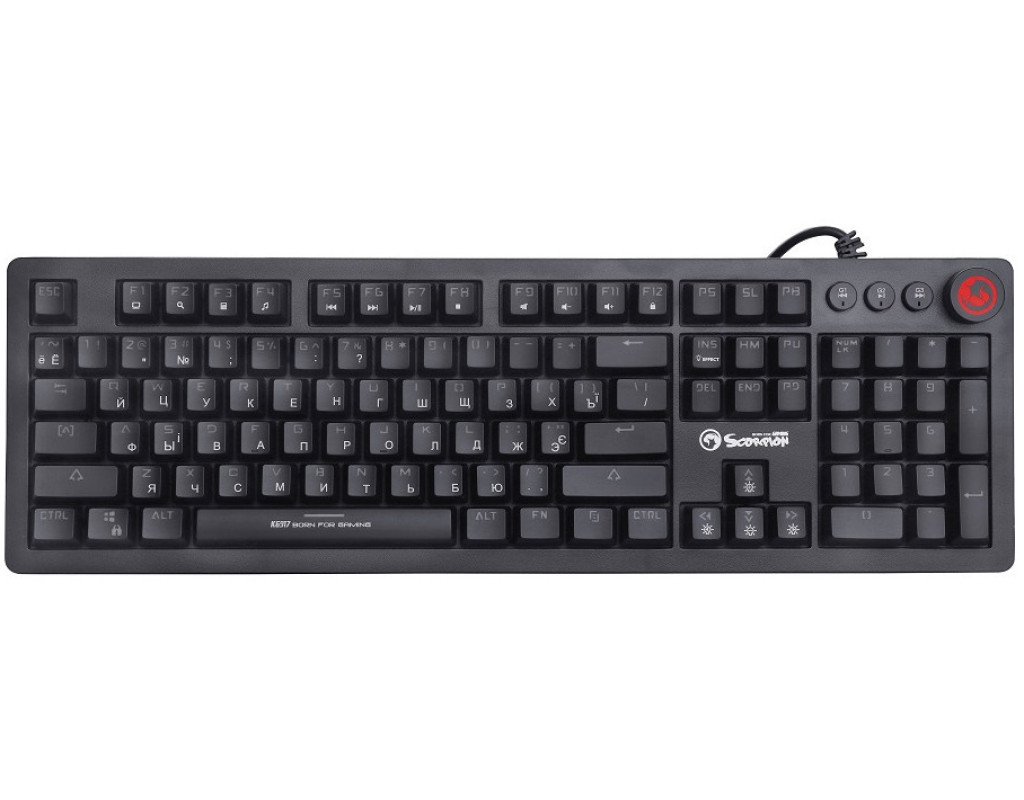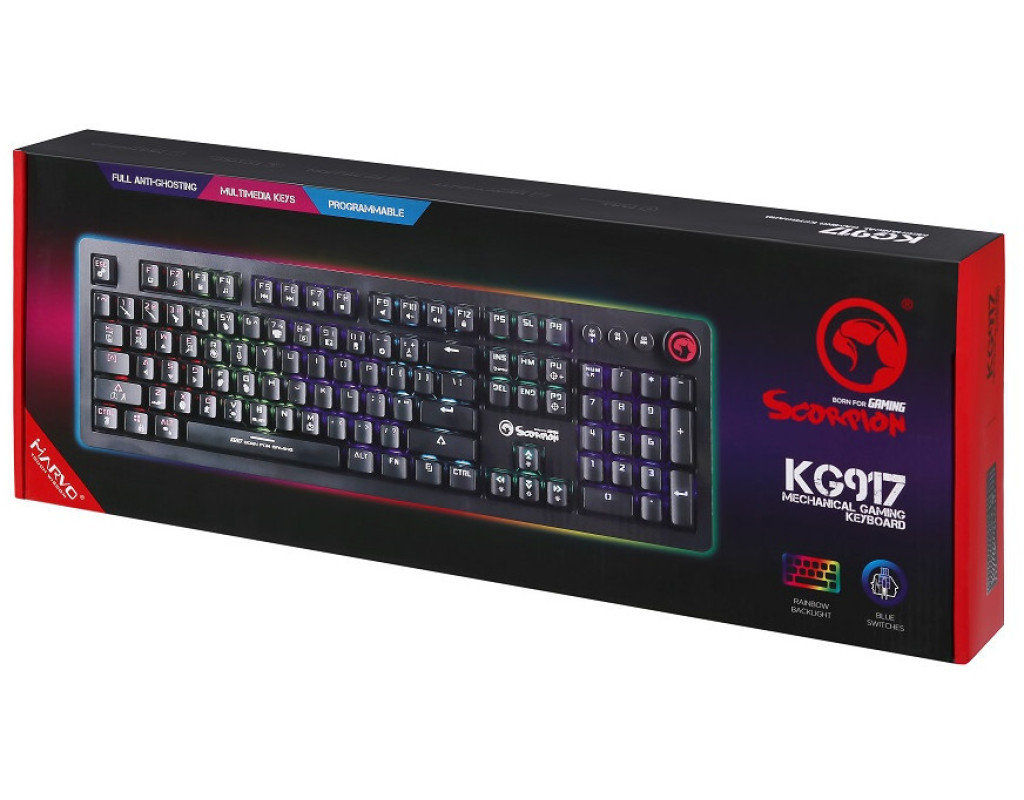 | Клавиатура Marvo KG917 Multi-LED Mechanical Blue Switch является воплощением инновационного дизайна для настоящих ценителей игрового оборудования. Эта игровая механическая клавиатура, разработанная с акцентом на максимальную производительность и комфорт, станет настоящим союзником в любой игровой битве. Основным преимуществом Marvo KG917 является использование механических переключателей Outemu Blue, известных своей надежностью и характерной тактильной обратной связью. Они обеспечивают ощутимую реакцию с характерным щелкающим звуком при каждом нажатии, что способствует быстрой и точной взаимосвязи, независимо от игровых условий. Это особенно актуально для геймеров, которые ценят быстрое и точное распознавание каждого нажатия. Благодаря технологии Full anti-ghosting N-key rollover, клавиатура способна одновременно распознавать множество нажатий клавиш, включая модификаторы типа CTRL, ALT и другие. Это позволяет избежать конфликтов между командами, обеспечивая безукоризненный контроль над игровым процессом. Marvo KG917 также впечатляет своей динамичной LED-подсветкой, имеющей 20 разнообразных световых эффектов. Благодаря специальному программному обеспечению, пользователи могут персонализировать подсветку под свое настроение, что делает взаимодействие с клавиатурой еще более уникальным и захватывающим. Эргономично расположенные мультимедийные элементы управления предоставляют возможность легко переключать аудио треки и регулировать громкость, не выходя из игры. Отдельный ролик регулировки громкости добавляет удобства в управлении, позволяя мгновенно контролировать звуковые параметры. Полноразмерная конструкция клавиатуры обеспечивает комфортное расположение пальцев, позволяя игрокам сосредоточиться на игре. Элегантный дизайн рамки и качественные материалы придают устройству не только функциональности, но и стильности. Клавиатура имеет двуязычную раскладку - английскую и русскую, что делает её универсальной для пользователей различных регионов. С возможностью настройки макросов и переназначения клавиш каждая клавиатура становится отражением индивидуальности своего владельца. Совместимость с Windows гарантирует безупречную интеграцию с операционной системой, позволяя без лишних усилий настроить все возможности устройства под свои нужды. Клавиатура Marvo KG917 Multi-LED Mechanical Blue Switch - это сочетание технологичности, стиля и функциональности, которое станет незаменимым инструментом в арсенале каждого геймера. |