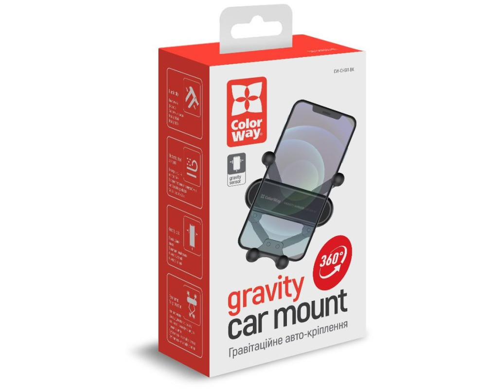 Автомобильный держатель СolorWay для телефона Gravity Sensor Holder Black – это функциональное устройство для смартфона, устанавливаемое в дефлектор системы вентиляции автомобиля, и позволяющее зафиксировать телефон под любым углом, благодаря механизму вращения на 360 градусов. Аксессуар изготовлен из прочных материалов, а регулируемый крепежный механизм обеспечивает надежную фиксацию смартфона в дефлекторы автомобиля. Покрытие фиксаторов исключает появление царапин и потертостей на корпусе смартфона при его установке в держатель. Этот элегантный и функциональный девайс обеспечит надежную фиксацию Вашего смартфона в автомобиле и не займет много места благодаря компактным размерам. Особенности