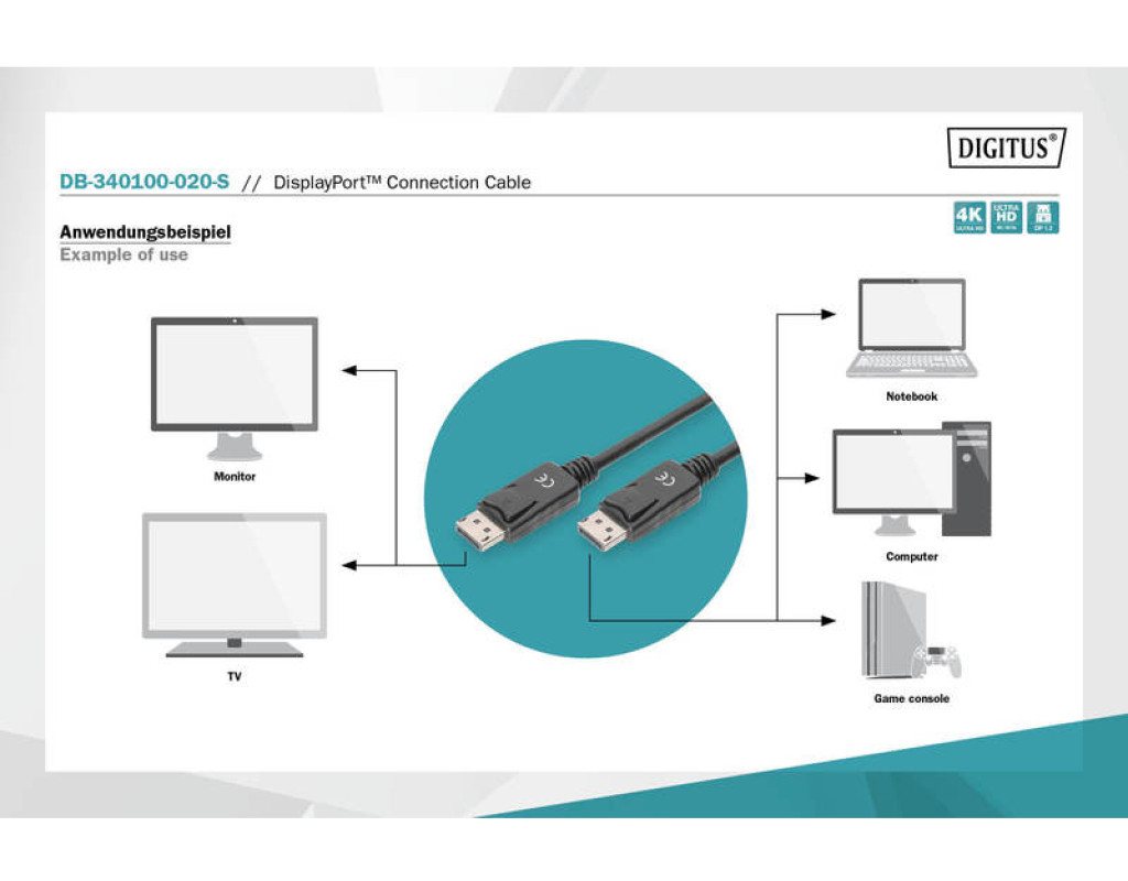 | Прочное надежное соединение благодаря фиксации разъемов. Этот высокоскоростной цифровой аудио-/видеокабель с поддержкой HD используется для подключения ПК или ноутбука к мониторам с интерфейсом DisplayPort. |