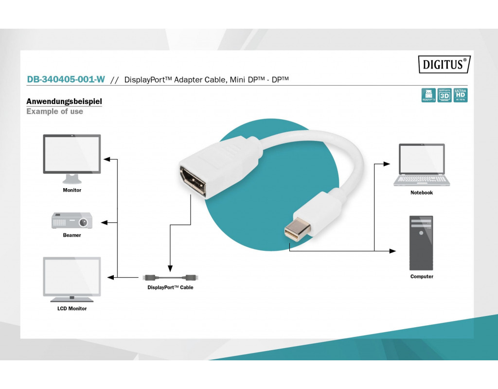 | Этот цифровой видео- и аудиокабель HD идеально подходит для подключения MacBook, MacBook Air, MacBook Pro, iMac, Mac mini и Mac Pro к монитору DP или проектору, ЖК-TFT-монитору с помощью кабеля DisplayPort. Кабель DIGITUS совместим с DisplayPort версии 1.2 и поддерживает разрешение до UHD 4 K/60 Гц. |