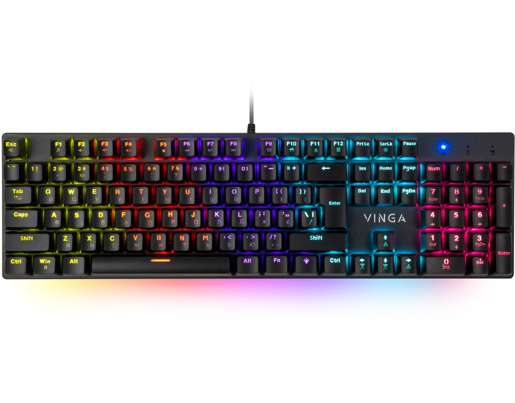 | Клавиатура Vinga KBGM-100 LED Blue Switch USB Black (KBGM-100 Black) — это исключительный выбор для настоящих геймеров и тех, кто ценит высокое качество и производительность в своей работе. Игровая клавиатура с механической конструкцией предлагает лучший опыт благодаря своему точному и быстрому тактильному отклику. Ее Blue Switch переключатели обеспечивают выразительный щелкающий звук, который добавляет динамики и особого удовольствия от игры или набора текста. Такая клавиатура становится незаменимой частью любой игровой станции, позволяя вам максимально реализовать свои умения. Многоцветная подсветка клавиатуры Vinga KBGM-100 добавляет не только стиль, но и функциональность, позволяя комфортно работать и играть даже в темноте. Вы можете настроить подсветку в соответствии с вашим настроением или потребностями. Это создает уникальное и захватывающее игровое пространство, углубляя атмосферу каждой битвы. Эта полноразмерная клавиатура оснащена всем необходимым, включая клавиши F1-F12 и NumPad, что делает ее отличным выбором как для игр, так и для рабочих задач. Для пользователей, которые часто меняют язык ввода, эта клавиатура поддерживает украинскую и английскую раскладки, что добавляет удобства в работе и общении. Проводное подключение через USB обеспечивает стабильную и надежную связь без задержек, что критически важно во время интенсивных геймерских сессий и работы. Такое подключение гарантирует максимальную скорость отклика и непрерывную работу устройства. Кроме того, клавиатура прекрасно совместима с ОС Windows, что позволяет легко интегрировать ее в любую систему и сразу начать пользоваться всеми преимуществами. Уникальная технология позволяет легко заменить отдельную клавишу в случае необходимости, что снижает затраты на обслуживание и значительно увеличивает срок службы. Это делает Vinga KBGM-100 LED оптимальным решением для всех, кто ищет качественный, надежный и стильный инструмент для игр и работы. Выбрав Vinga KBGM-100, вы получаете не просто клавиатуру, а мощного союзника, готового помочь вам быть лучшим как в игровых соревнованиях, так и в ежедневных задачах. Это интеграция инновационных технологий и безупречного исполнения в одном устройстве. |