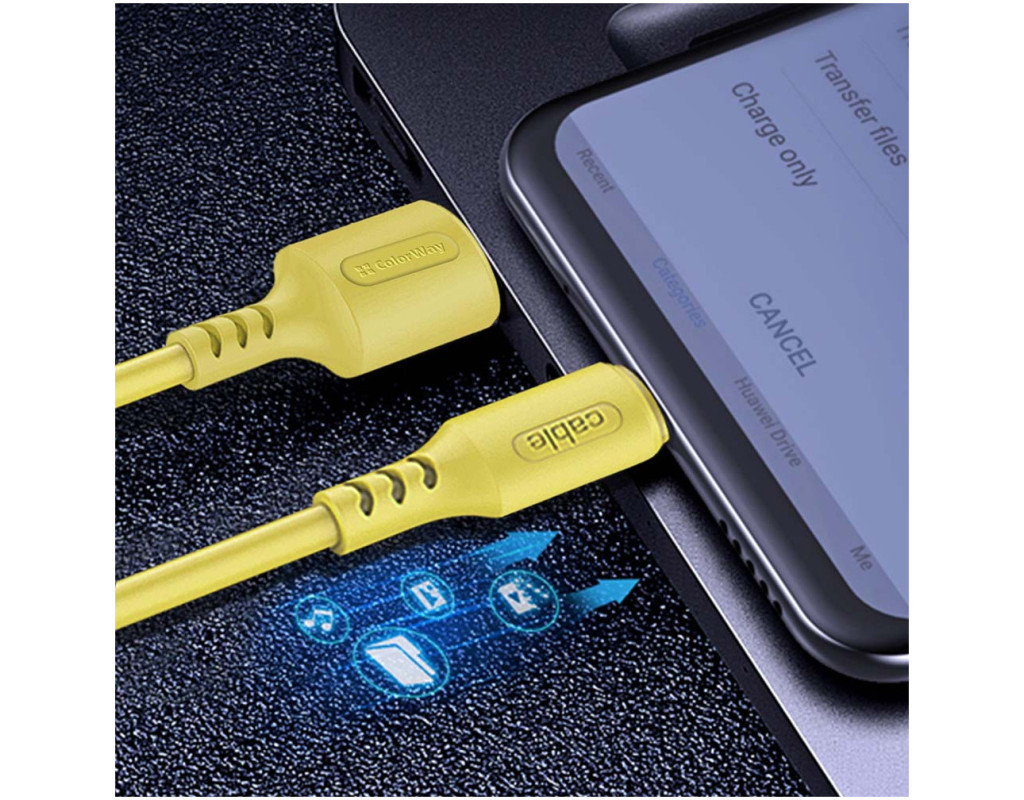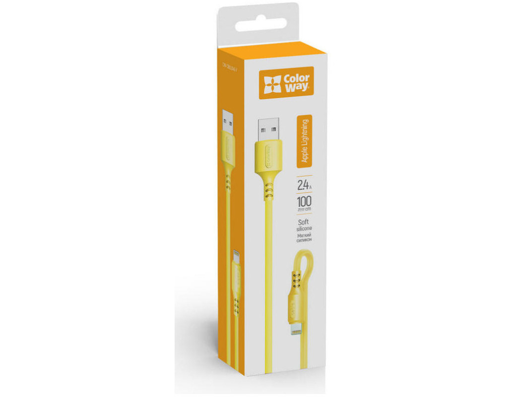 Дата кабель USB 2.0 AM to Lightning 1.0m soft silicone yellow ColorWay (CW-CBUL043-Y)