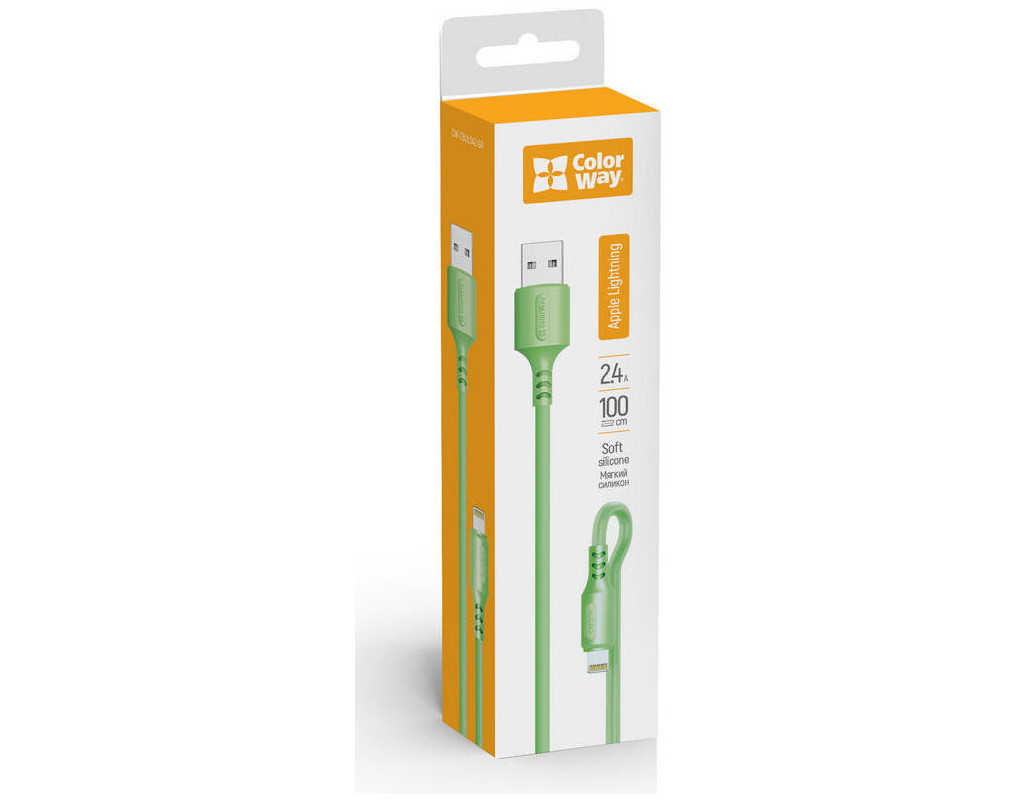 Дата кабель USB 2.0 AM to Lightning 1.0m soft silicone green ColorWay (CW-CBUL042-GR)