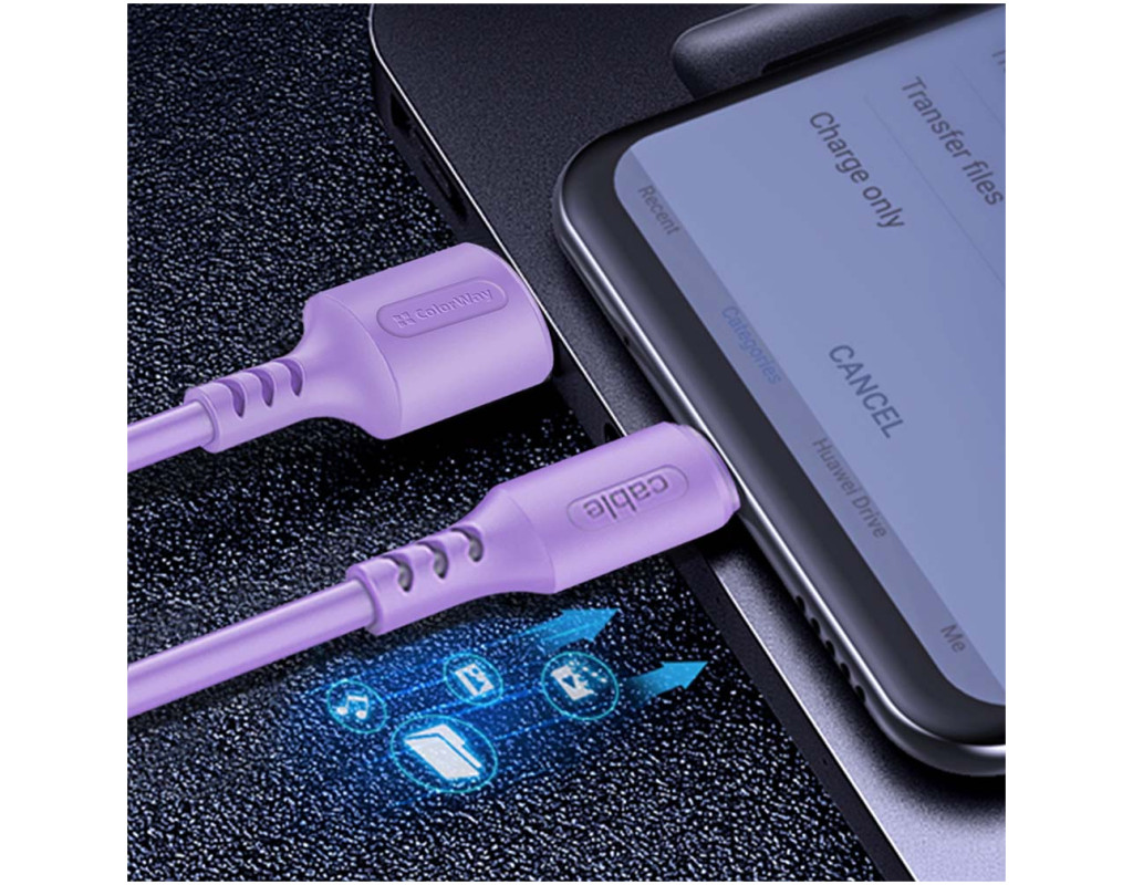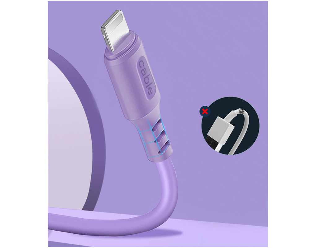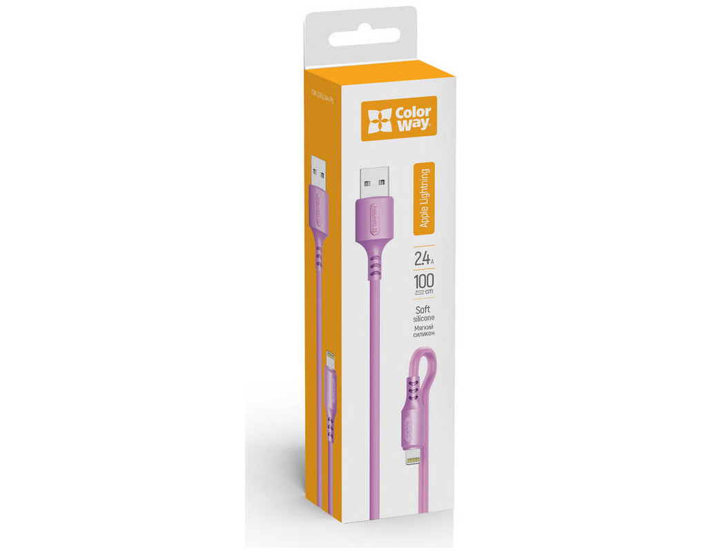 Дата кабель USB 2.0 AM to Lightning 1.0m soft silicone violet ColorWay (CW-CBUL044-PU)