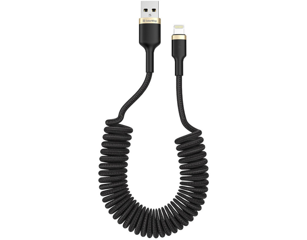Дата кабель USB 2.0 AM to Lightning 1.0m spiral black ColorWay (CW-CBUL051-BK)