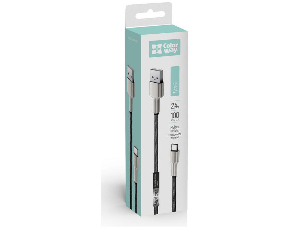 Дата кабель USB 2.0 AM to USB-C 1.0m head metal black ColorWay (CW-CBUC046-BK)