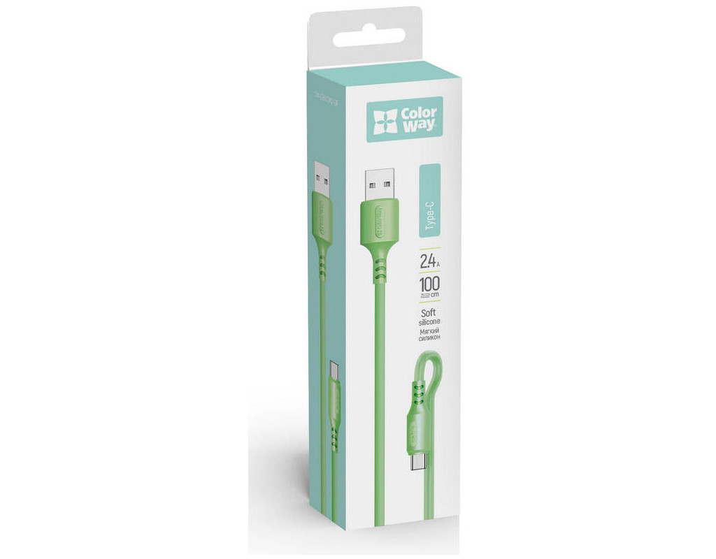 Дата кабель USB 2.0 AM to USB-C 1.0m soft silicone green ColorWay (CW-CBUC042-GR)