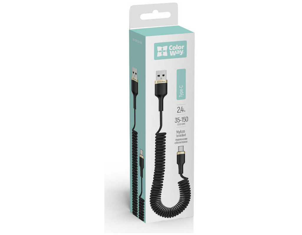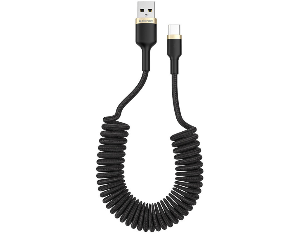 Дата кабель USB 2.0 AM to USB-C 1.0m spiral black ColorWay (CW-CBUC051-BK)