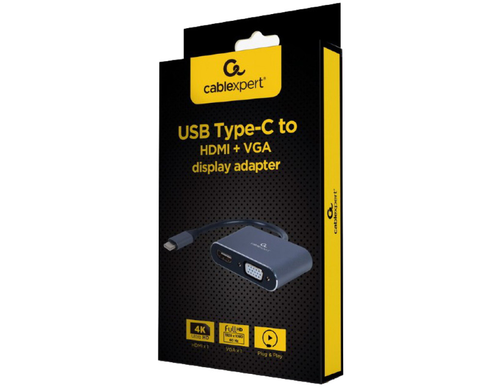 Переходник USB-C to HDMI/VGA, 4К 30Hz Cablexpert (A-USB3C-HDMIVGA-01)
