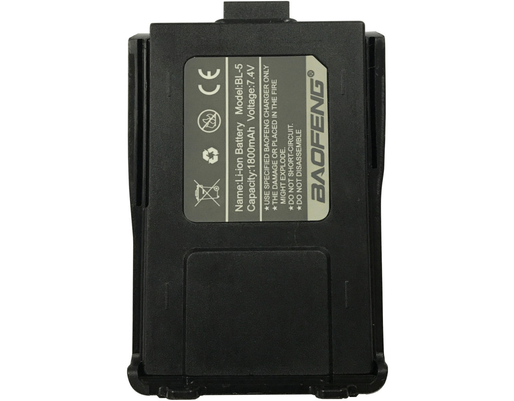 B-580T. Рации часто используются вдали от городских коммуникаций и электричества, для того чтобы рация не разрядилась в наиболее неподходящий момент стоит заранее позаботиться о дополнительном питании рации. Мощная аккумуляторная батарея Baofeng будет оптимальным решением данной проблемы, она изготовлена по современной технологии Li-ion, и выдерживает 1000 циклов заряда/разряда без существенной потери емкости.