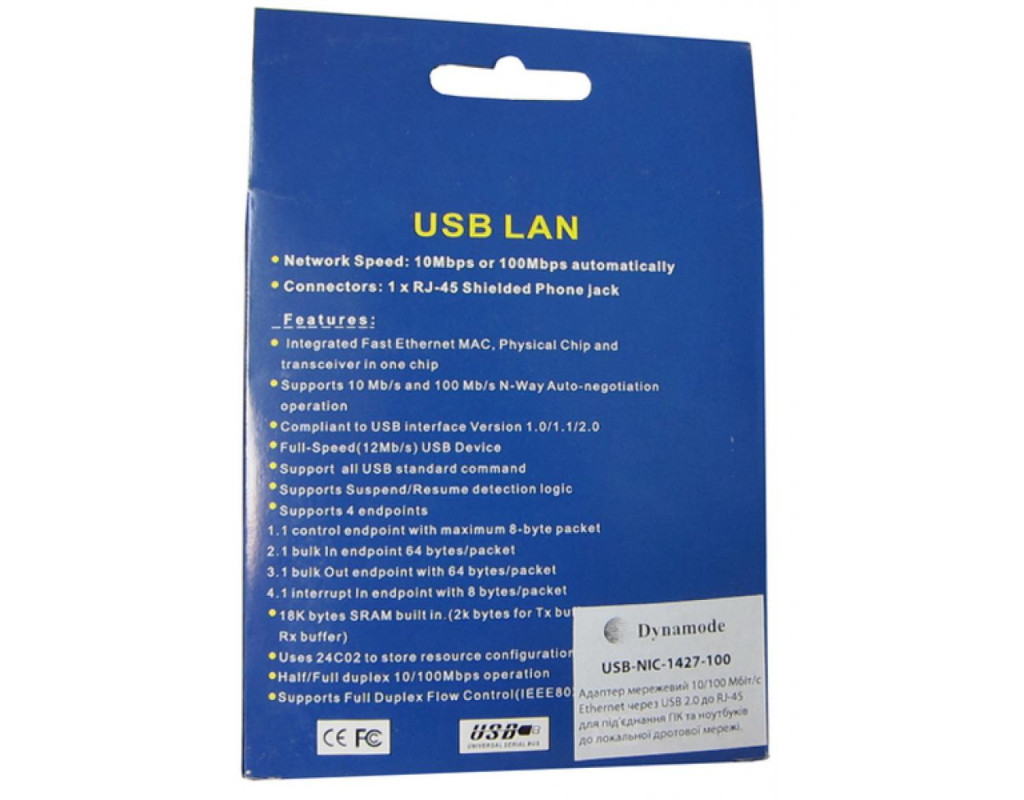 Кабель для передачи данных USB To RJ45 Lan Ethernet Dynamode (USB-NIC-1427-100)