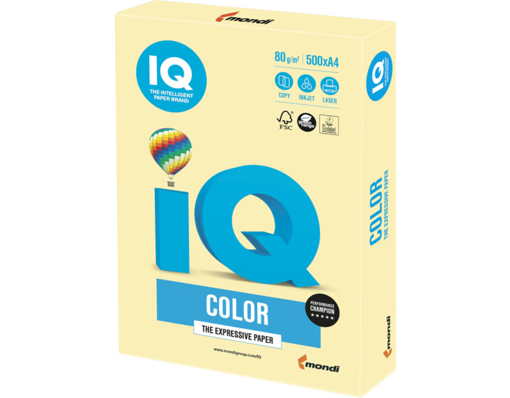 Кольоровий папір IQ Color підходить для друку на обладнанні струменевого й лазерного типу методом одностороннього і двостороннього друку. Кольоровий папір часто використовують для багатьох видів творчості — виготовлення аплікацій, виробів, скрапбукінгу. Папір IQ Color вирізняється високими якісними характеристиками: