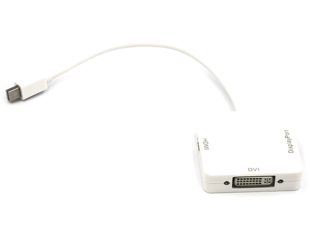 Кабель-переходник PowerPlant mini DisplayPort (Thunderbolt) — DisplayPort, HDMI, DVI 0.2 м