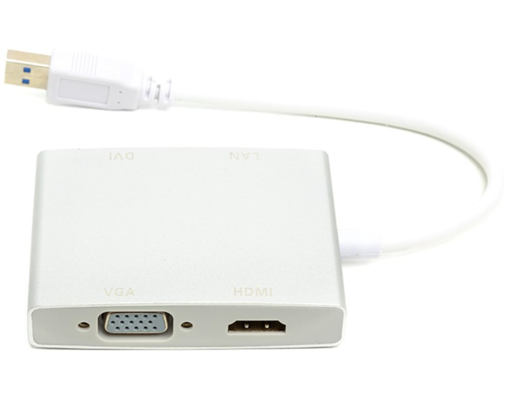 Переходник USB 3.0 to HDMI, DVI, VGA, RJ45 Gigabit Ethernet PowerPlant (CA912087)