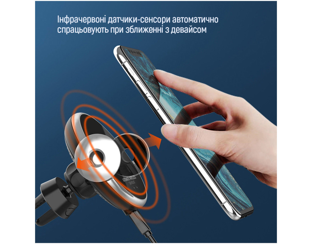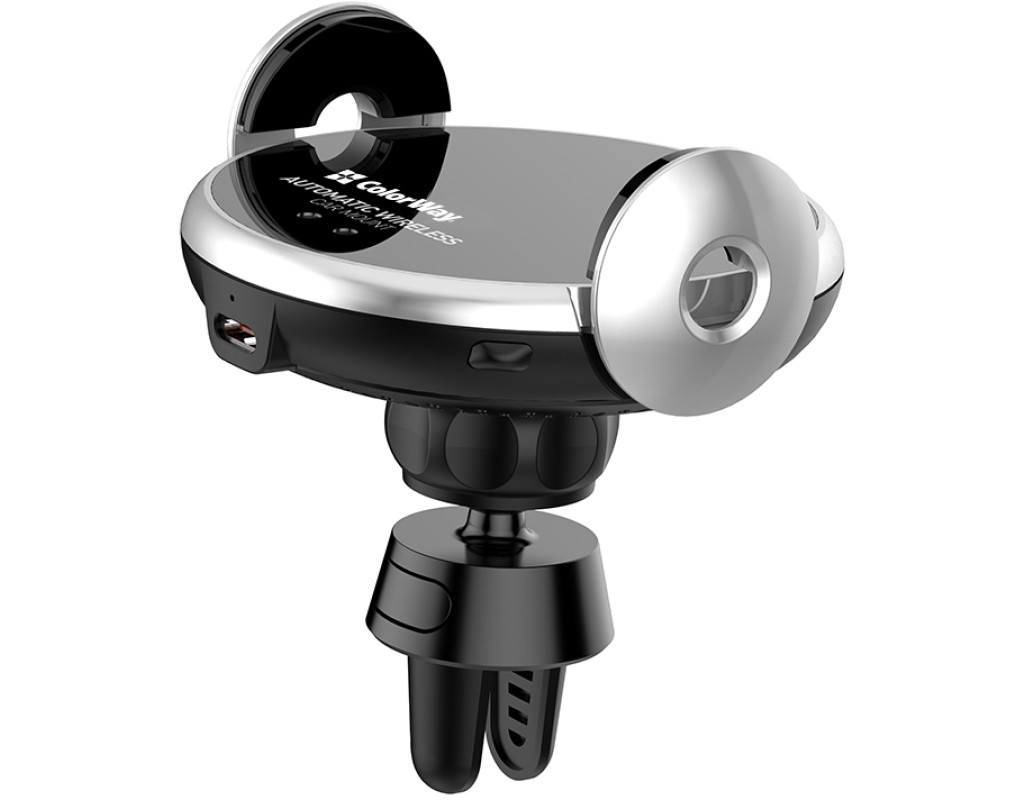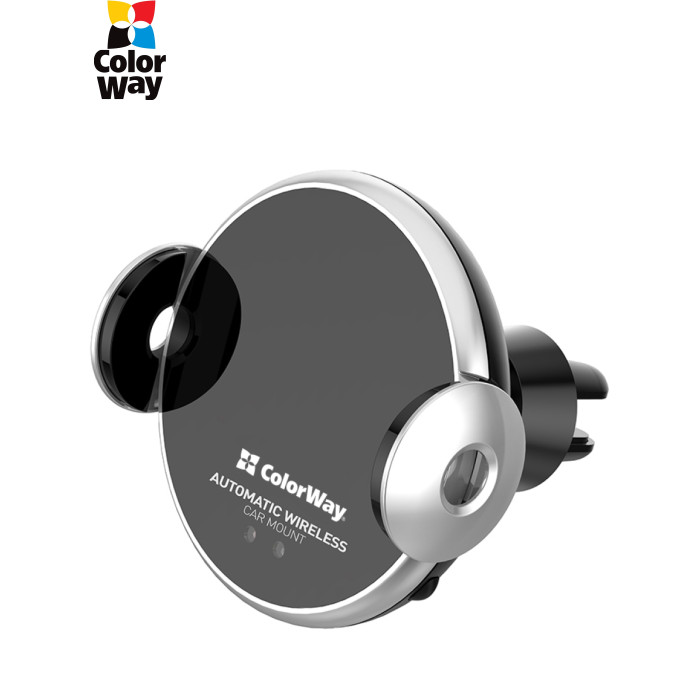 Автодержатель для телефона ColorWay с беспроводной зарядкой AutoSense Car Wireless Charger 2 15W Black для смартфона с автоматическим зажимом, который благодаря своим компактным размерам помогает водителю почти не отвлекаться от дороги, и удобно пользоваться любимым смартфоном одновременно заряжая его. Просто поднесите ваш смартфон к пустой подставке, встроенный датчик точно определит момент установки гаджета на держатель и даст движение боковым рамкам, которые остановятся сразу после того, как плотно и аккуратно охватят смартфон. Когда вам необходимо извлечь смартфон из держателя, вам просто нужно нажать на боковую кнопку панели и два зажима автоматически разомкнутся. Держатель легко крепится на решетке дефлектора, а высокая прочность крепления исключит возможность выпадения даже при сильном тряске. Прорезиненная клипса и кавычки предотвратят появление царапин как на самом устройстве, так и на вентиляционной решетке. Механизм вращения на 360 градусов позволит закрепить смартфон в удобном для вас положении. Кроме возможности надежной фиксации смартфона автомобильный держатель ColorWay AutoSense Car Wireless Charger 2 имеет встроенную беспроводную зарядку мощностью 15 Вт, что позволит зарядить смартфон с высокой скоростью. Зарядное устройство оснащено умным чипом для защиты устройств от короткого замыкания, перенапряжения, перегрева и перегрузки током. Особенности